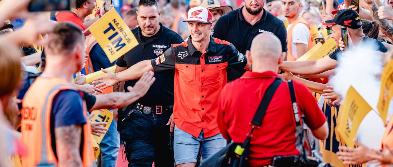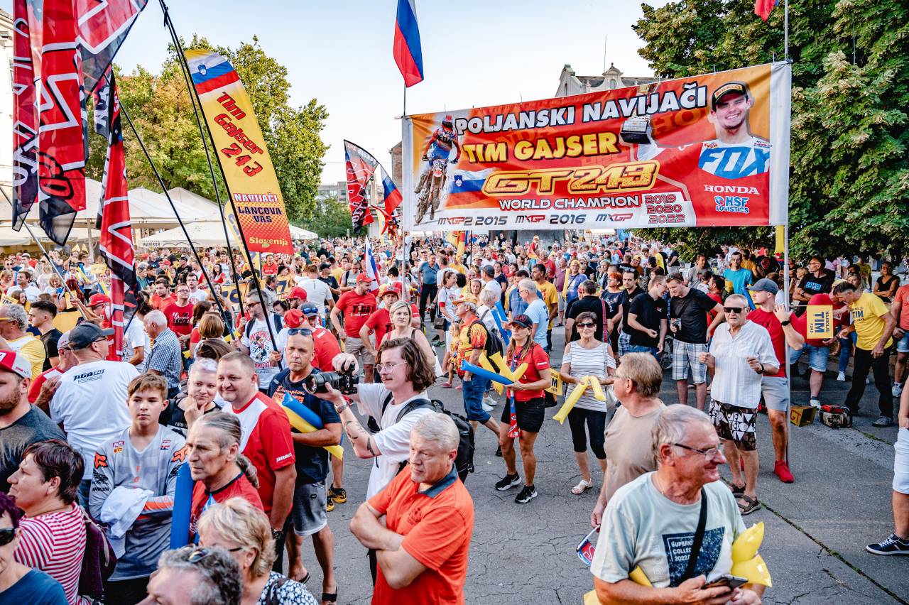 V Mariboru so danes navijači bučno sprejeli novega svetovnega prvaka razreda MXGP Tima Gajserja.