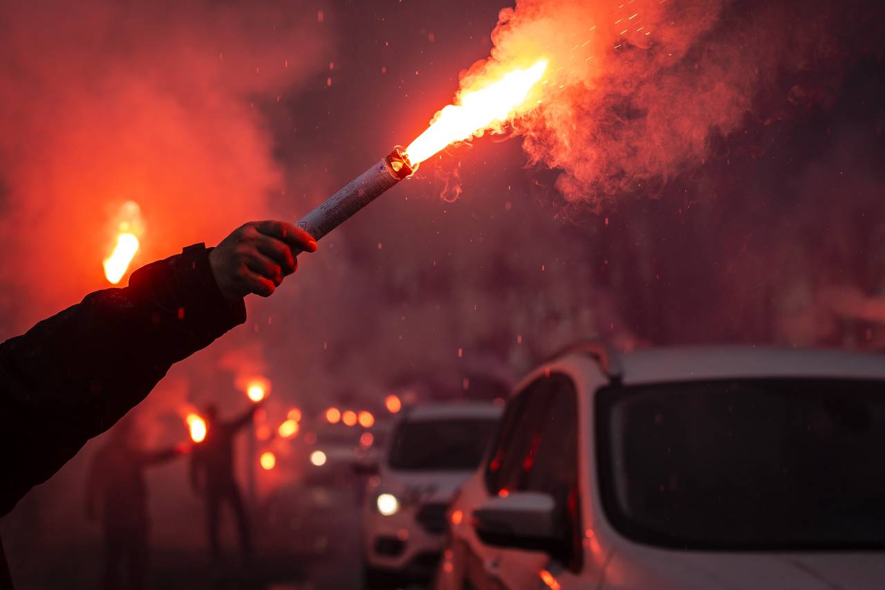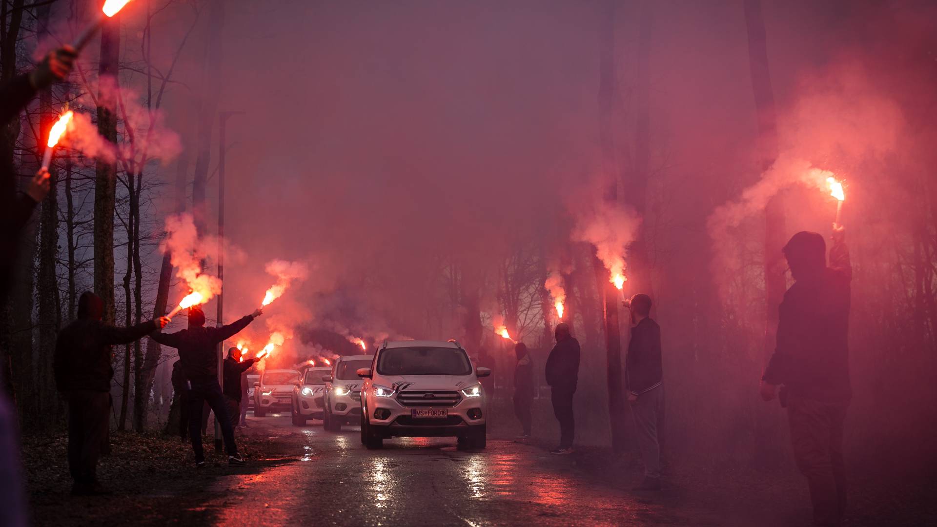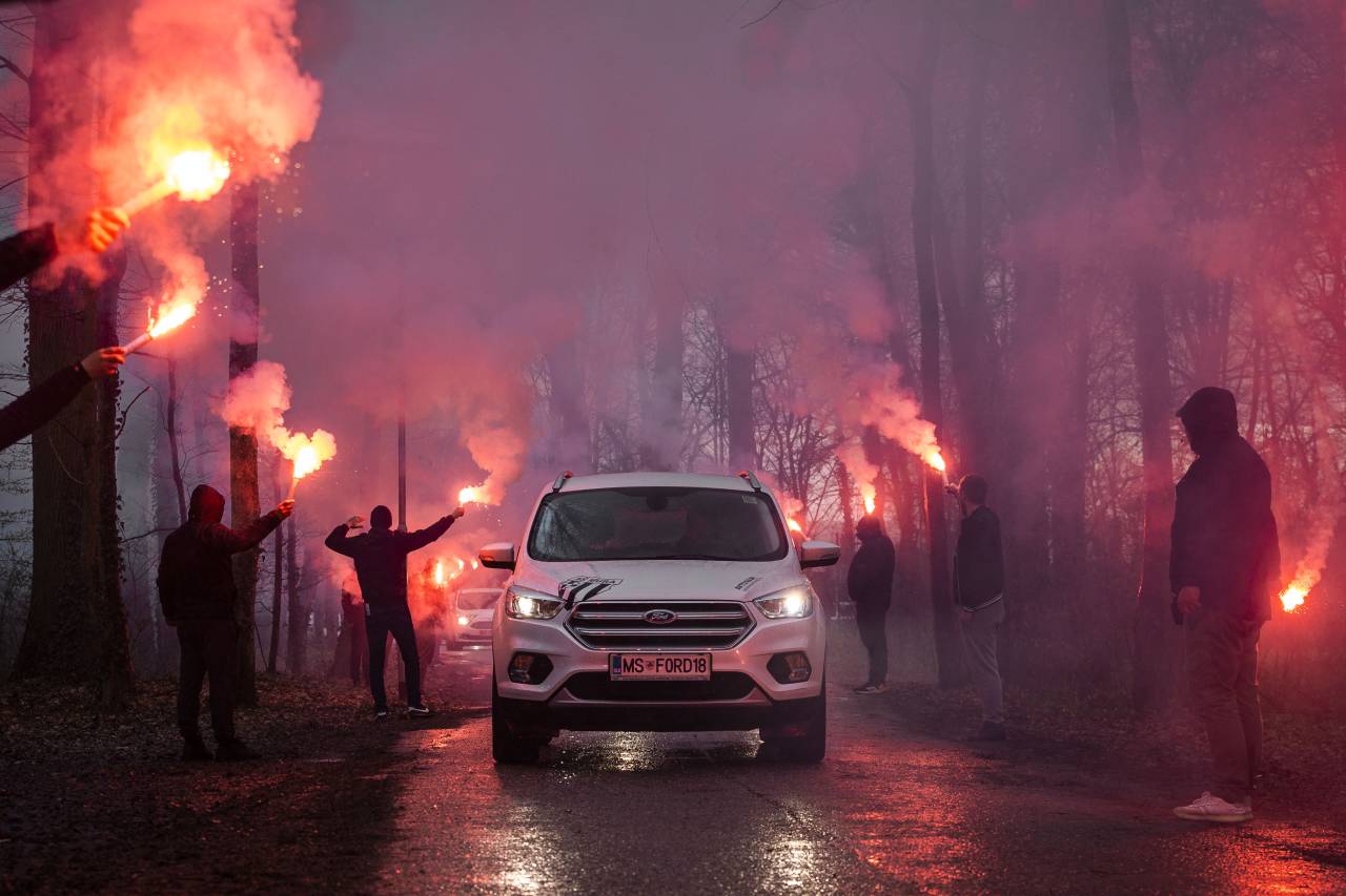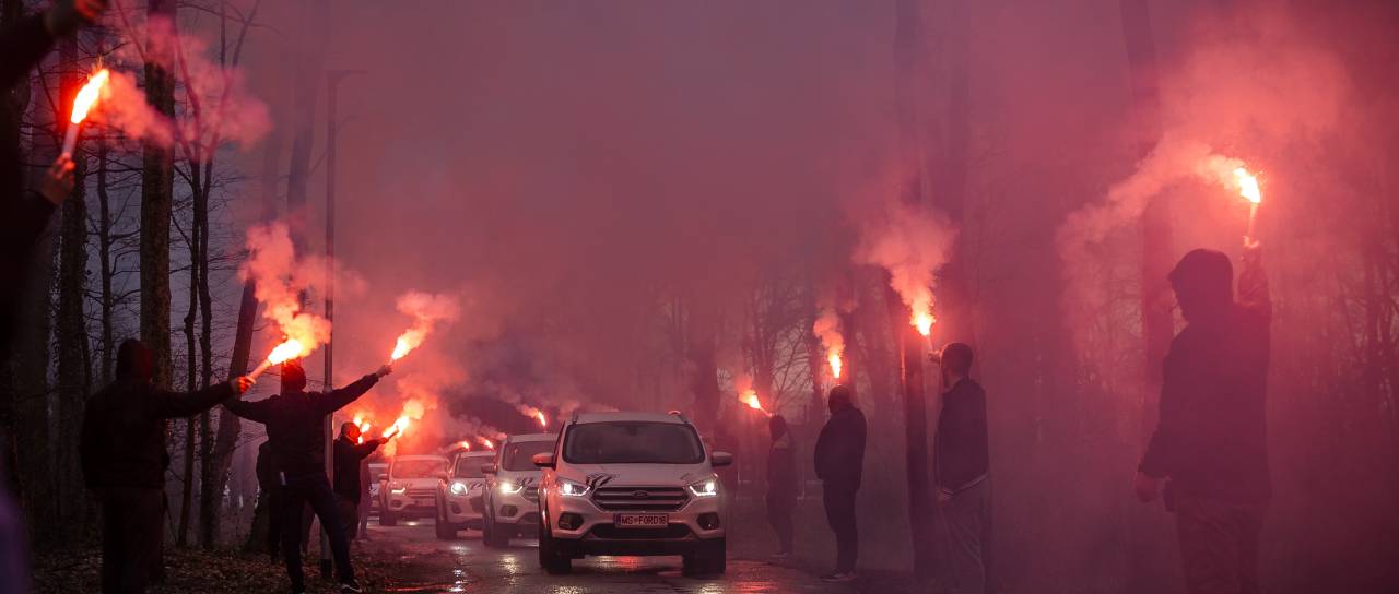 Tudi zdaj, ko jim na tribuno ni dovoljeno, pa so člani navijaške skupine poskrbeli za dodatno motivacijo svojih ljubljencev. Ti so namreč na stadion prišli "v spremstvu" bakel in navijaških vzklikov Black Gringosov.
