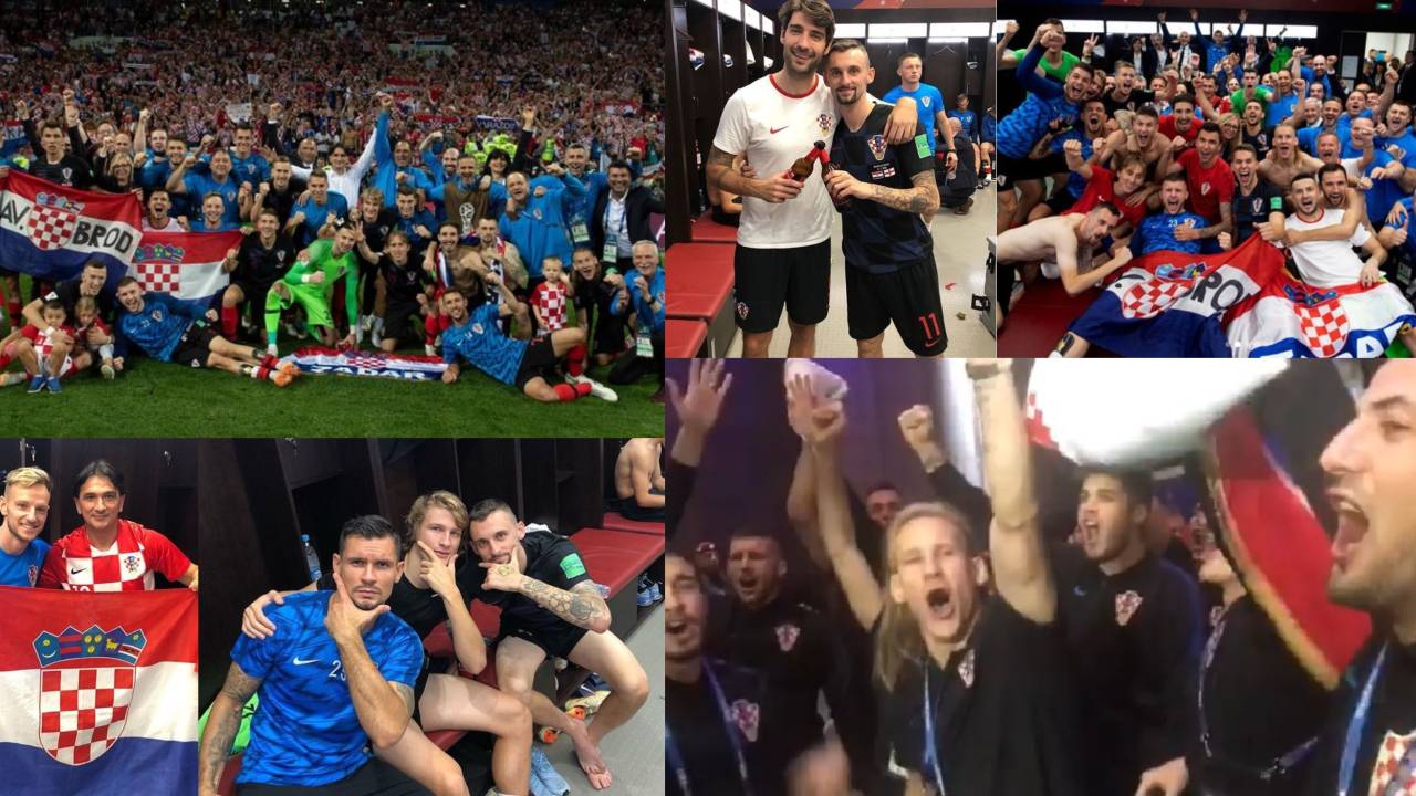 FOTO in VIDEO: Bučno slavje hrvaških nogometašev ob zmagi nad Angleži