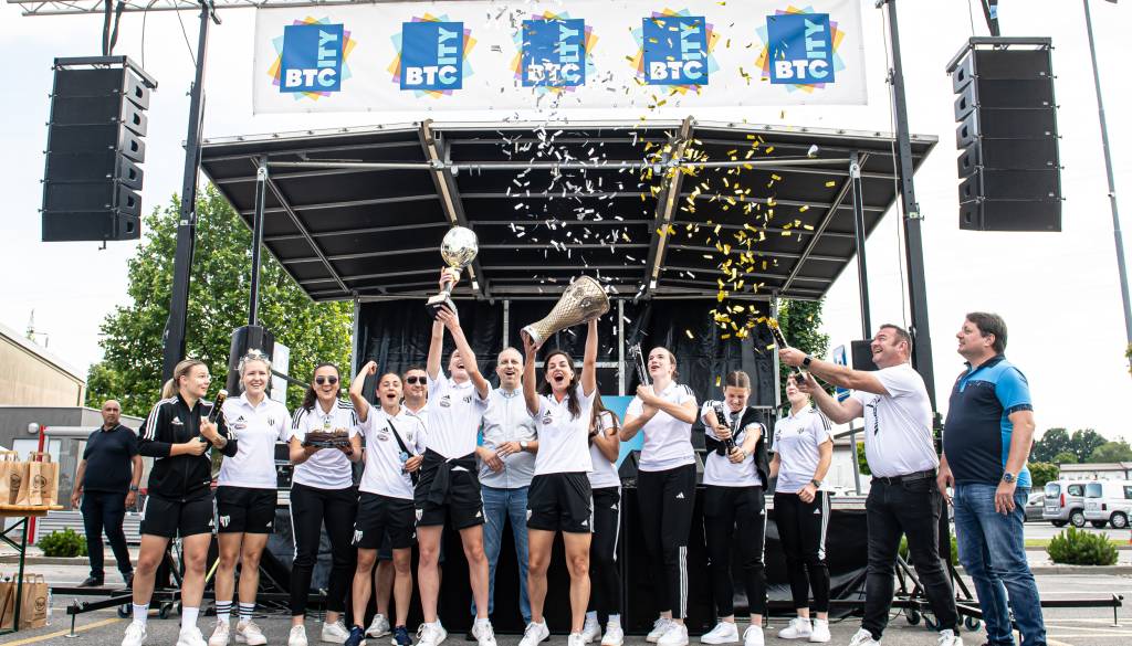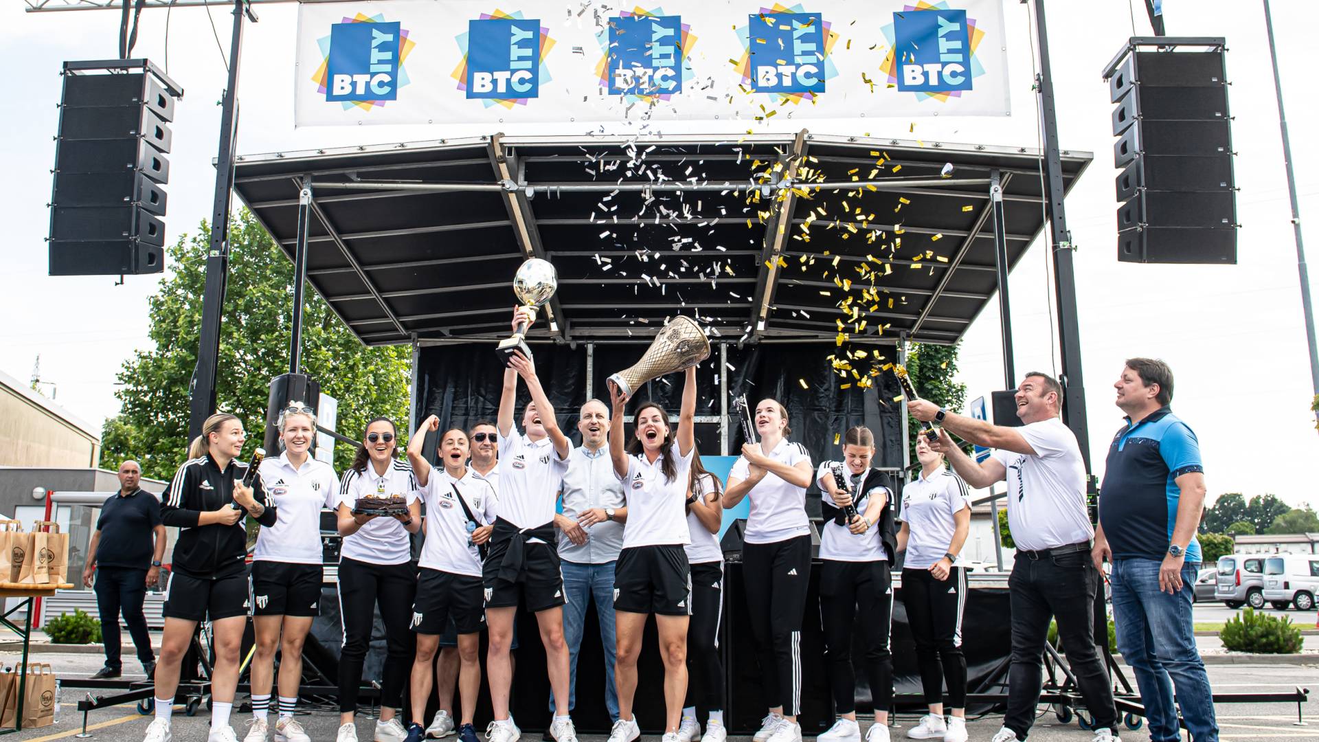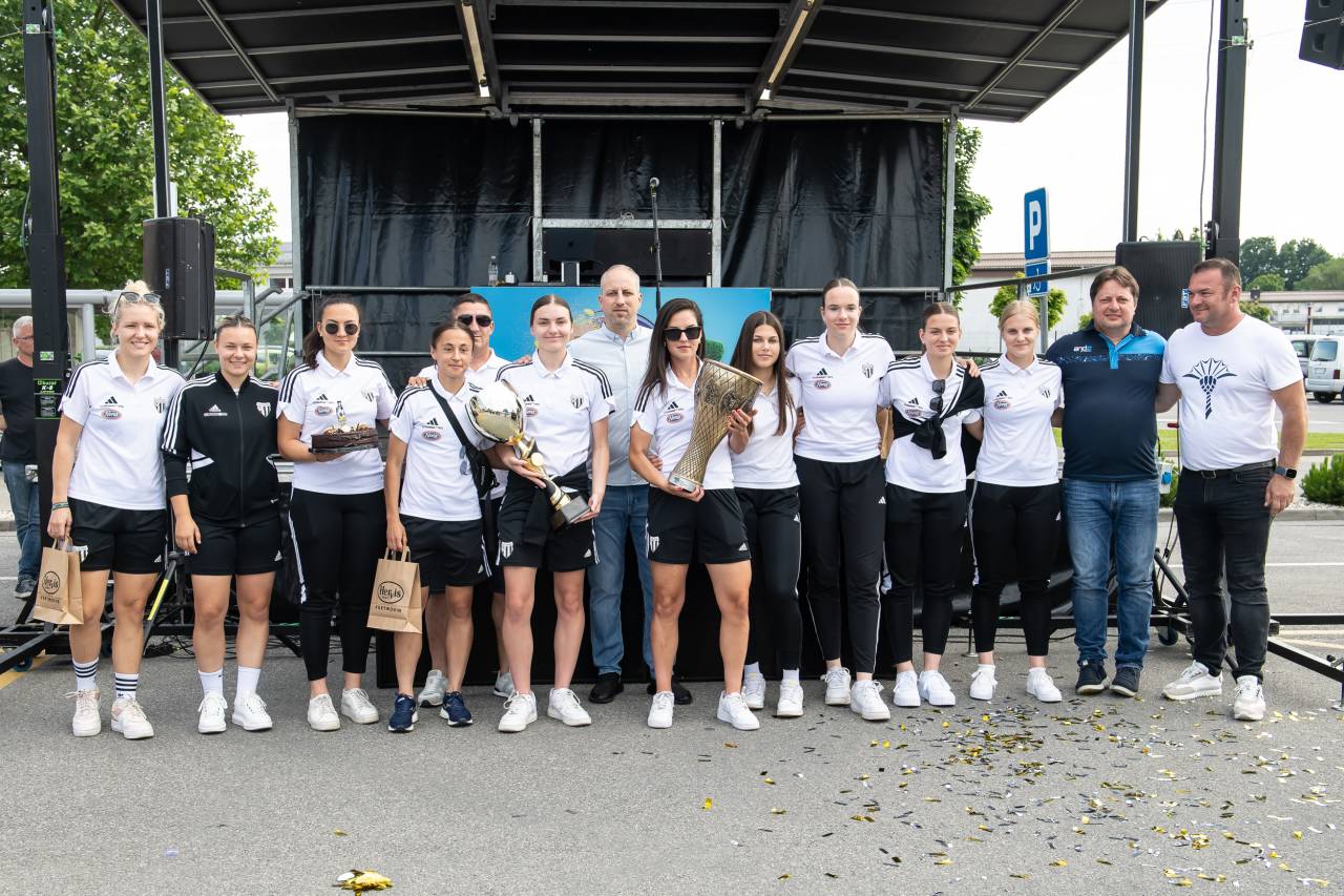 Nogometašice Mure None so včeraj ubranile pokalni naslov. Danes so jih pričakali s sprejemom pred BTC City Murska Sobota.