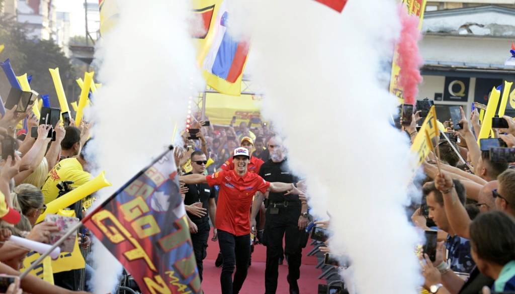 Na trgu so se zbrali številni ljubitelji moto športa in tudi drugi, ki so pozdravili novopečenega svetovnega prvaka. Spregovorila sta tudi mariborski župan Saša Arsenovič in predsednik olimpijskega komiteja Bogdan Gabrovec.