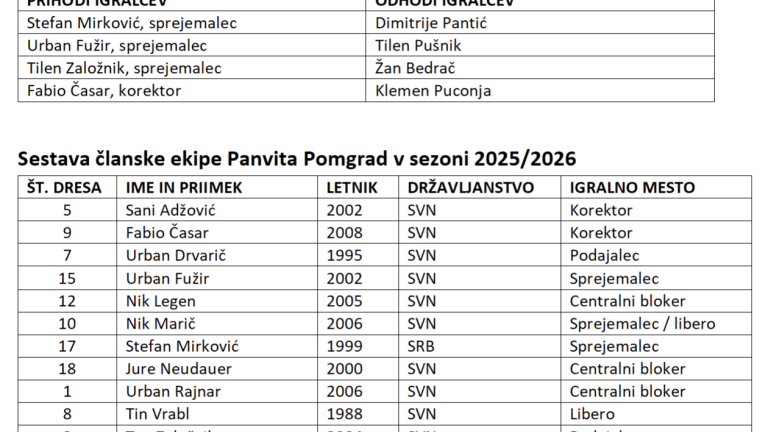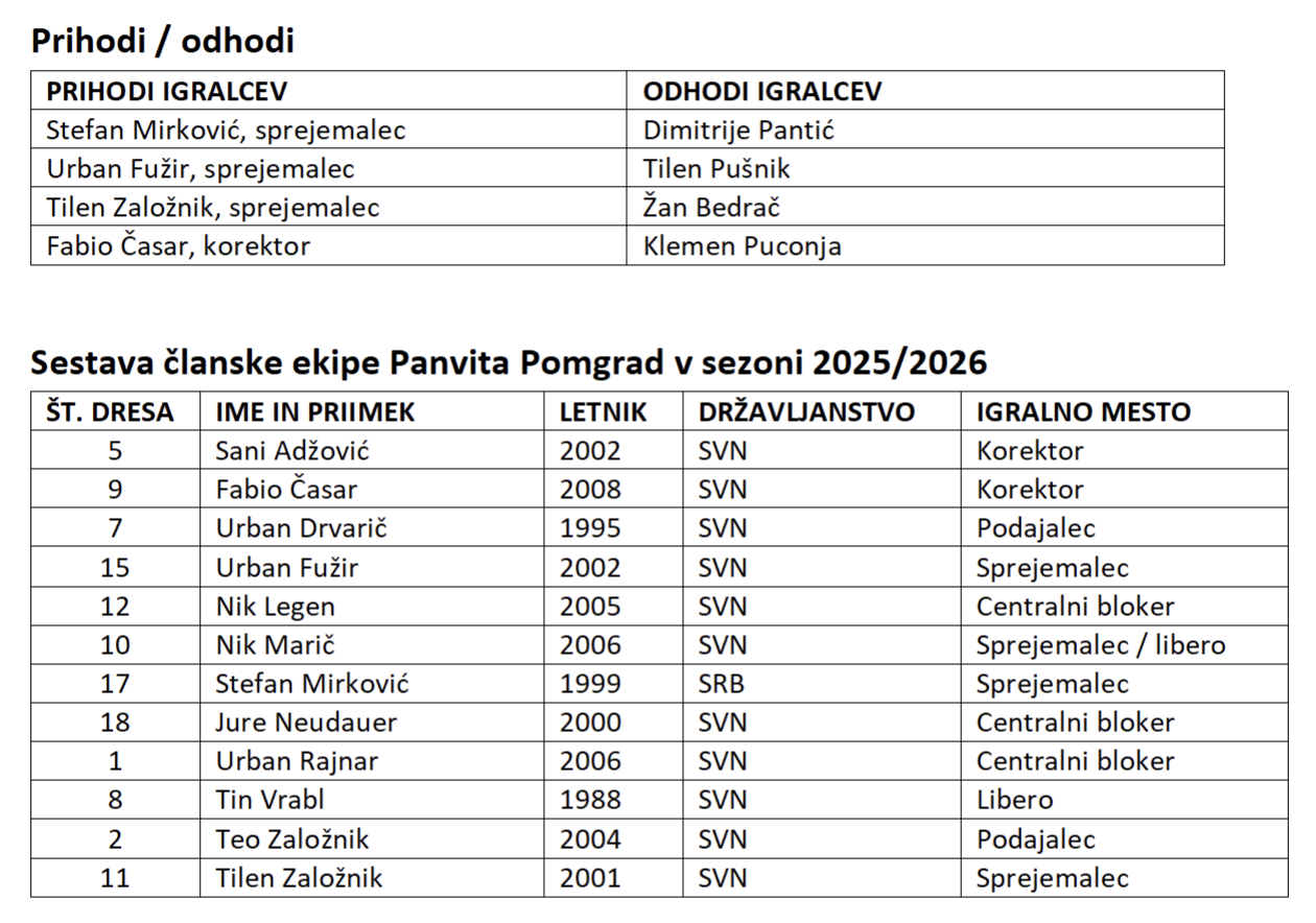Panvito Pomgrad, ki je prvoligaška odbojkarska stalnica v Sloveniji, so pred sezono okrepili: