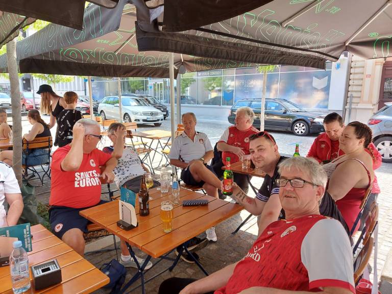 »Imate odlično pivo in tudi veliko cenejše je od našega. Verjetno si bomo pred tekmo privoščili še kakšen vrček ali dva ali deset,« v smehu odgovarjajo razposajeni irski navijači. Dodali so še, da vrček piva pri njih stane dobrih šest evrov.