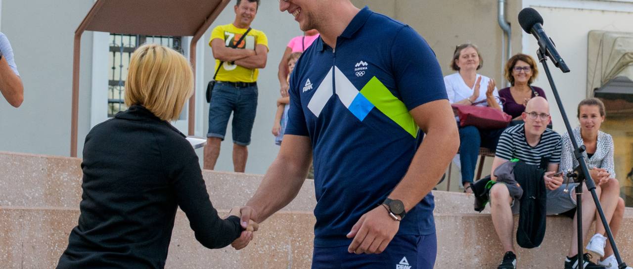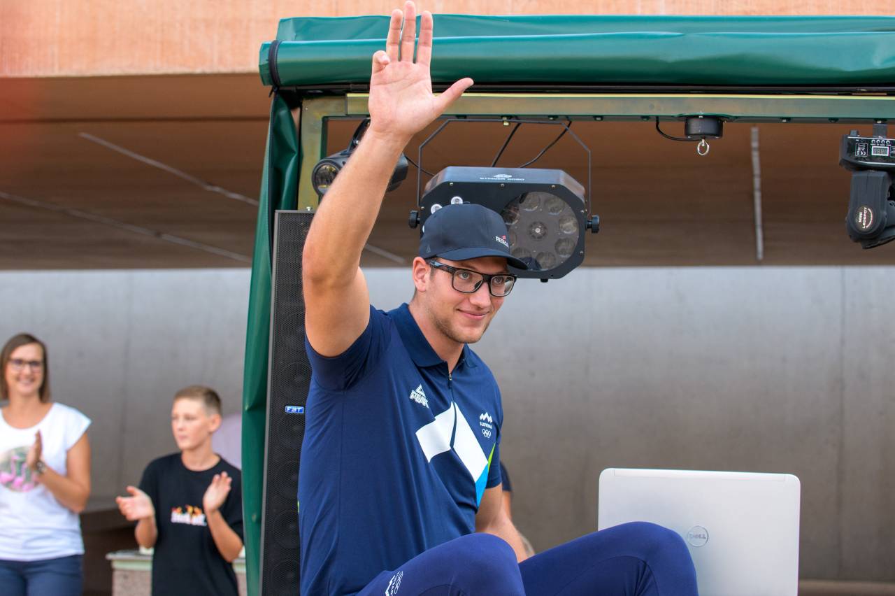 22-letnika so danes sprejeli na ptujski mestni tržnici, kjer so številni radovedneži šampionu lahko čestitali v živo.