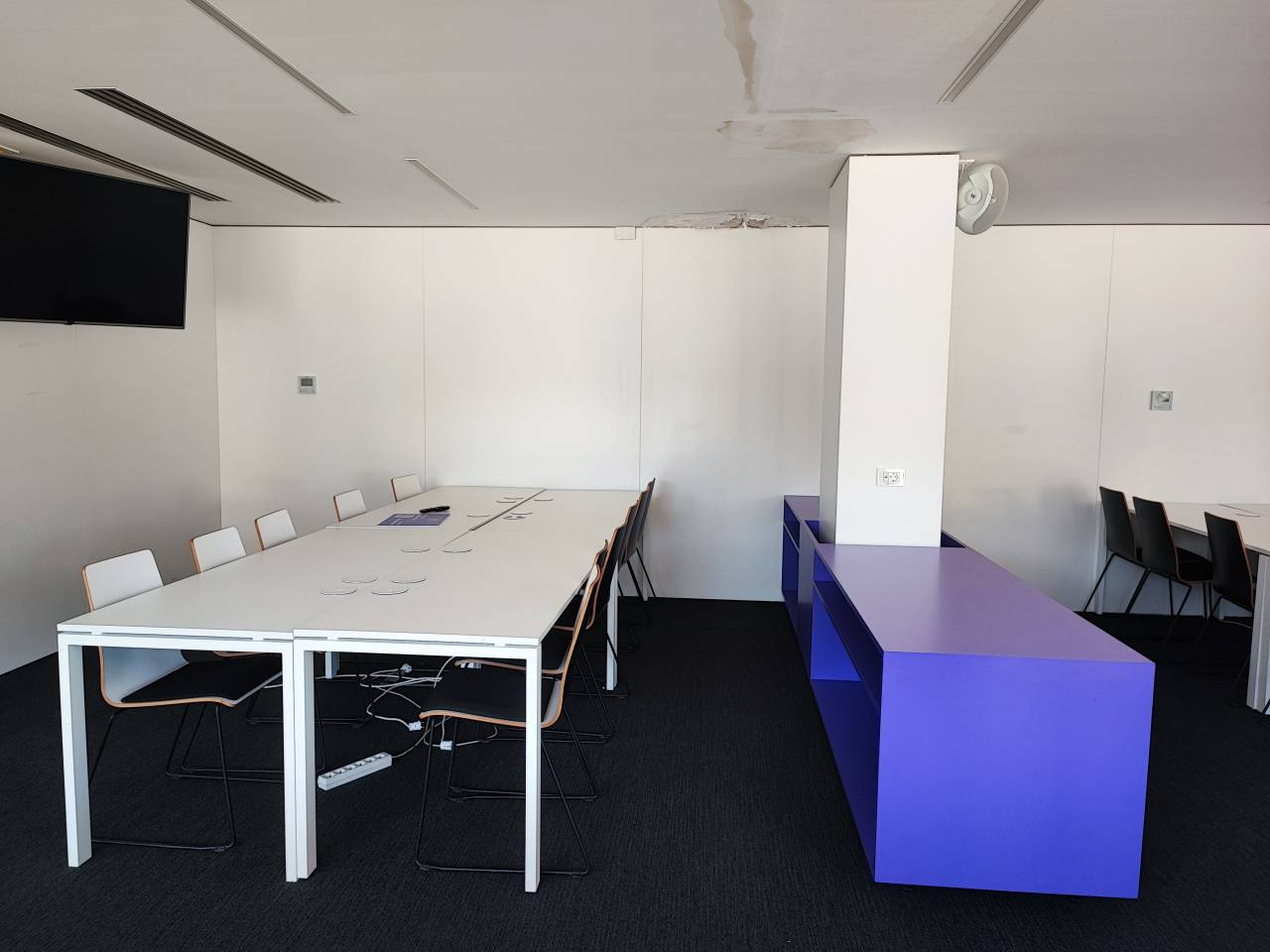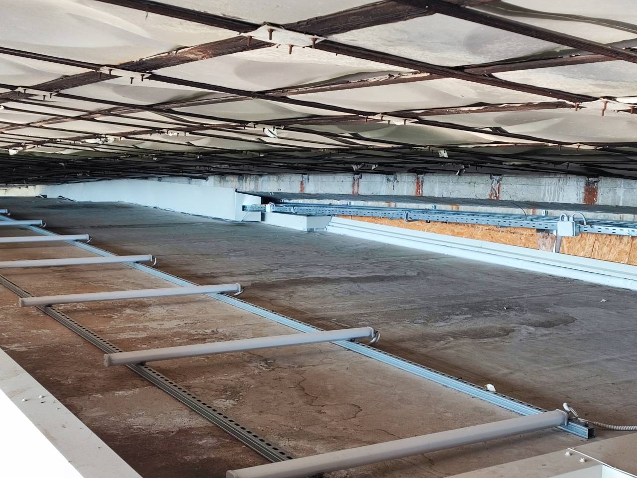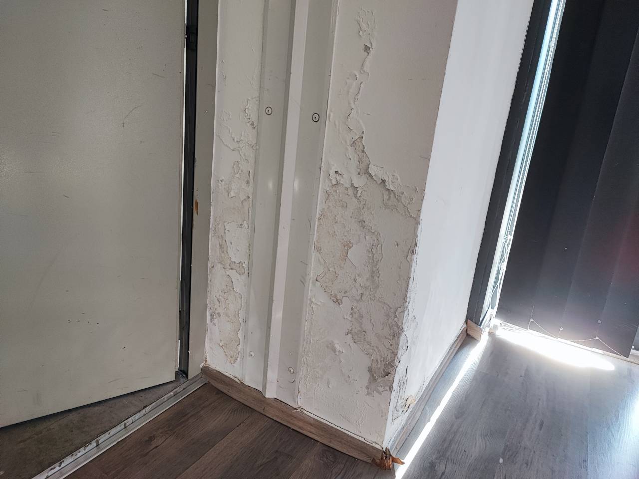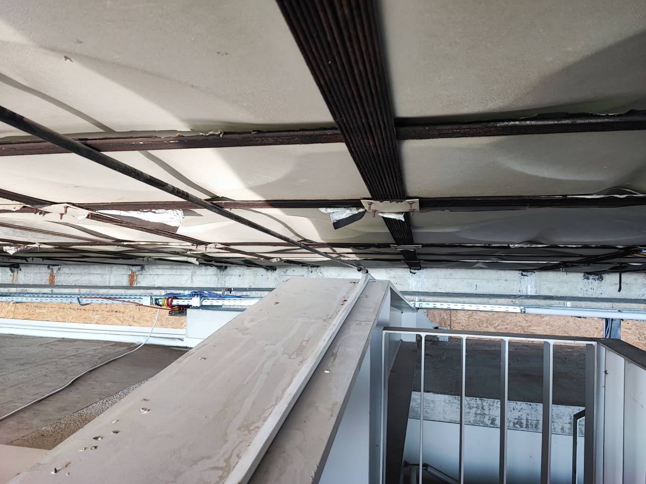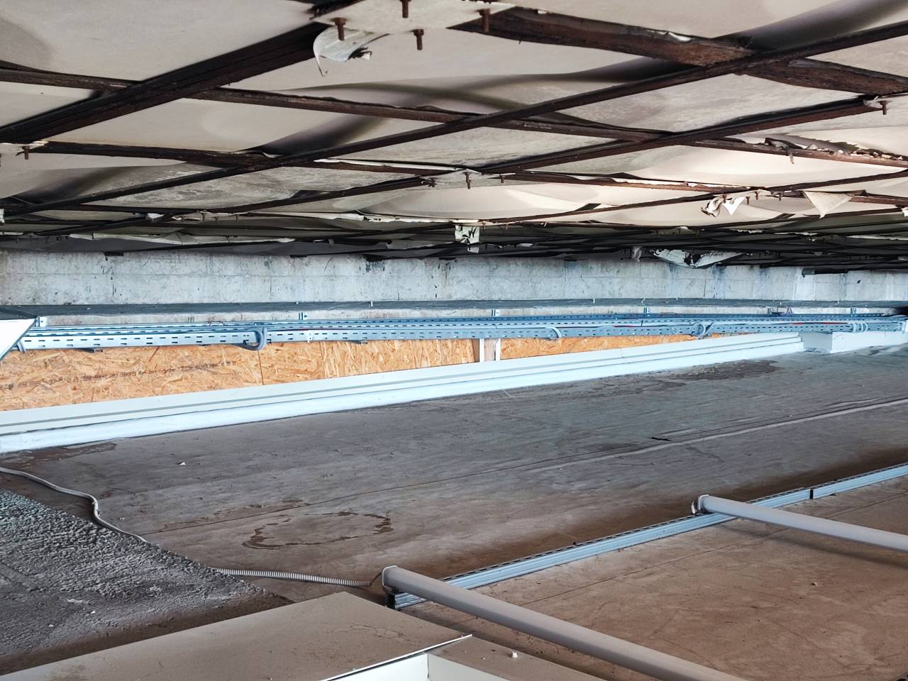 Voda pronica skozi strop in ob stenah, na nekaterih mestih tik ob električni napeljavi, razdelilnih omaricah ali pa tik nad tehniko za ozvočenje.