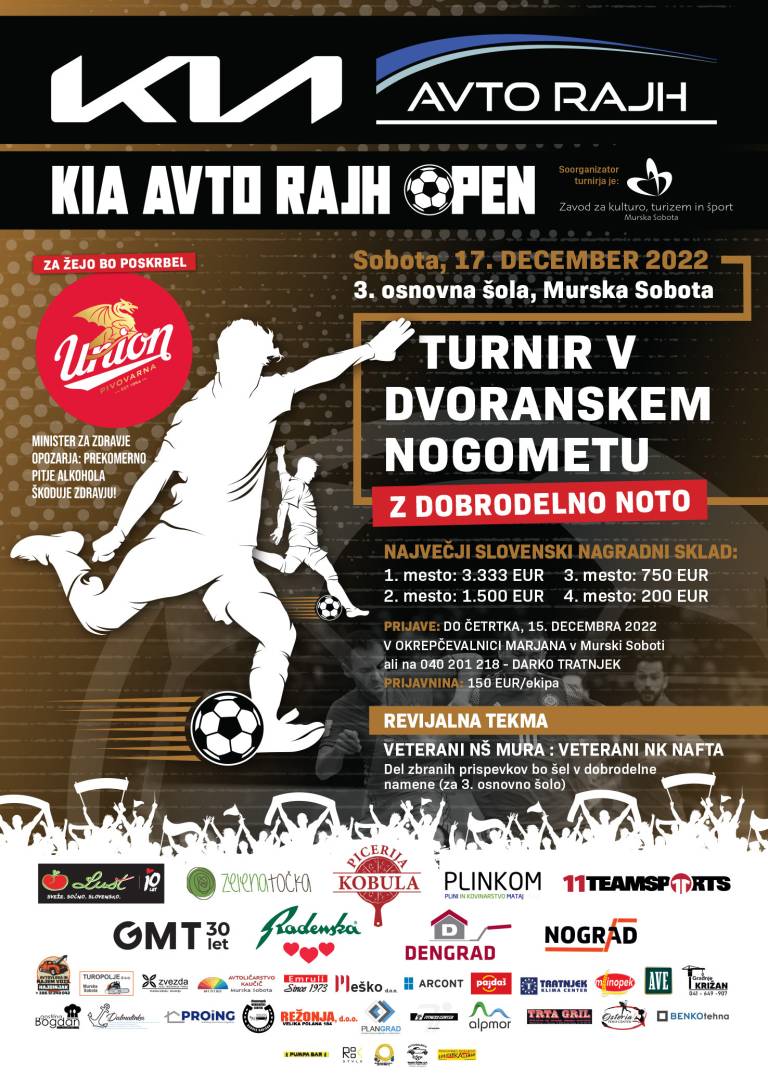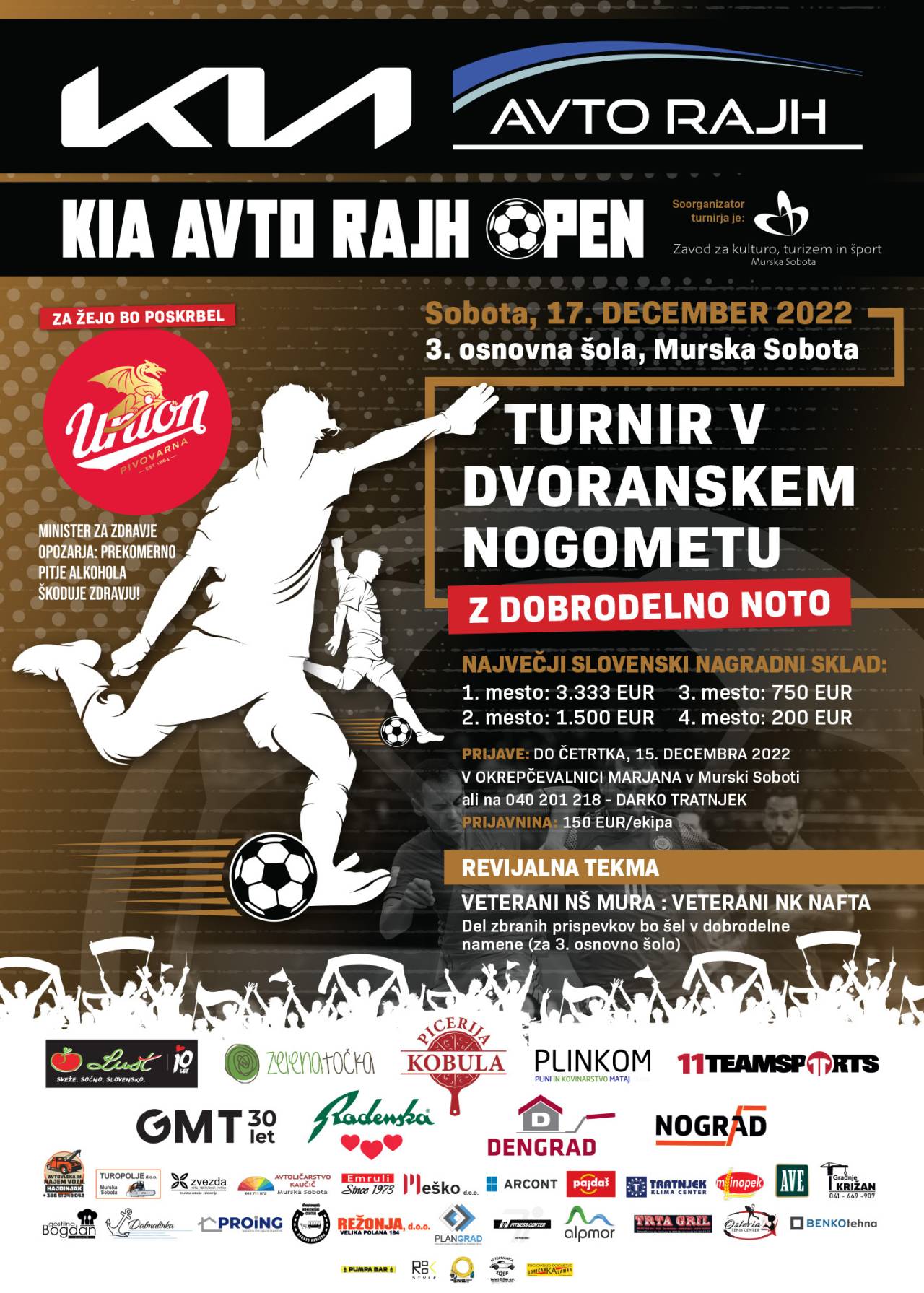 Športna dvorana Osnovne šole III Murska Sobota bo jutri gostila futsal turnir Kia Avto Rajh Open, na katerem se bo šestnajsterica ekip pomerila za najvišji slovenski nagradni sklad.
