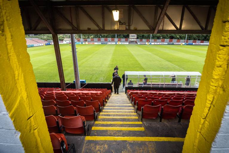 Da gre za zares tipičen otoški stadion, dokazuje tudi pogled ob rob igrišča. Tribune so zgolj kakšna dva metra oddaljene od stranske črte, zato lahko zapišemo, da na tem stadionu gledalci res dihajo za ovratnik sodnikov in nogometašev.