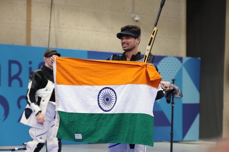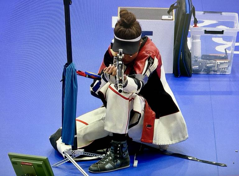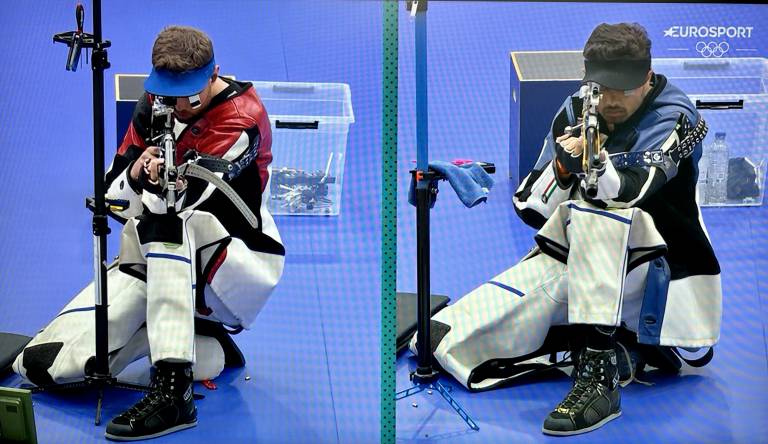Tudi indijski strelec z malokalibrsko piško Swapnil Kusale prisega na obutev izdelano v Prekmurju. V Parizu je v kraljevski disciplini trojni položaj, kjer je pred leti blestel tudi Rajmond Debevec, osvojil tretje mesto.