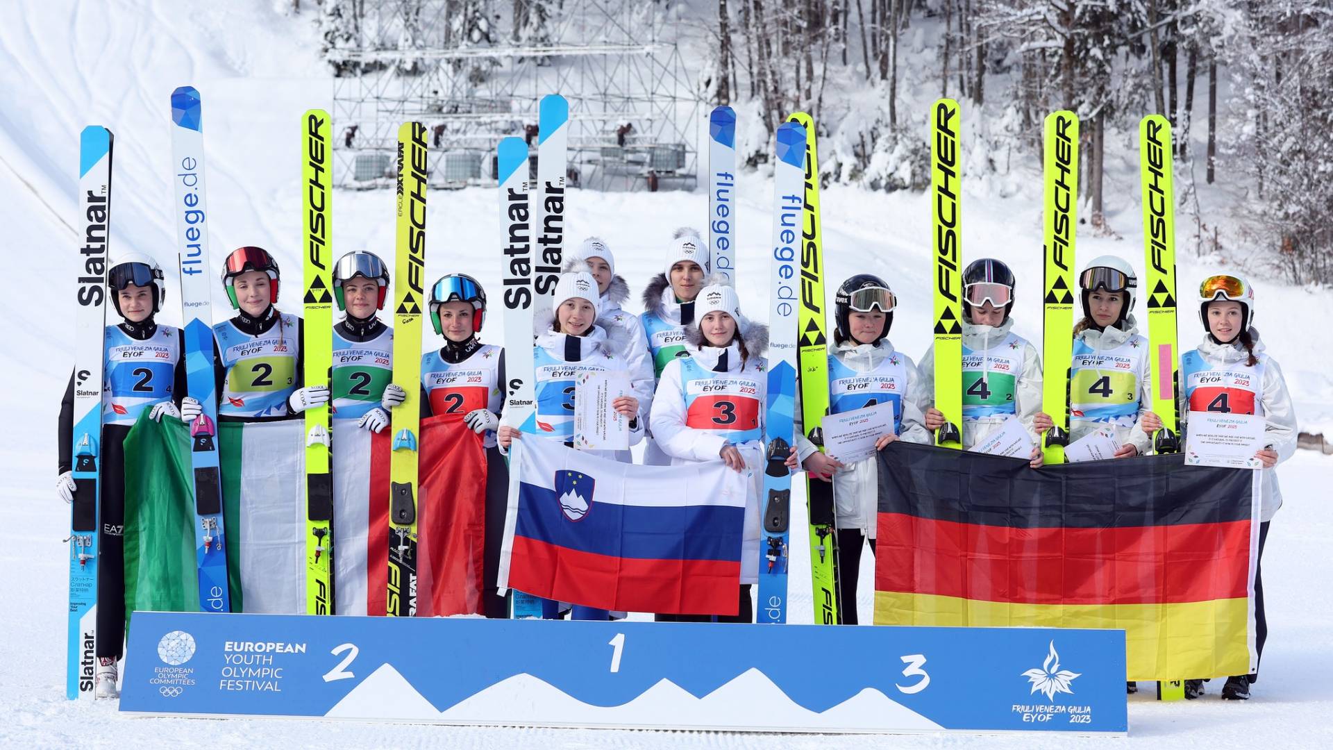 Skakalke Nika Prevc, Taja Bodlaj, Katarina Pirnovar in Tinkara Komar so v Planici za več kot 200 točk na zimskem Olimpijskem festivalu evropske mladine premagale Italijo in Nemčijo in tako osvojile tretjo zlato medaljo za Slovenijo.
