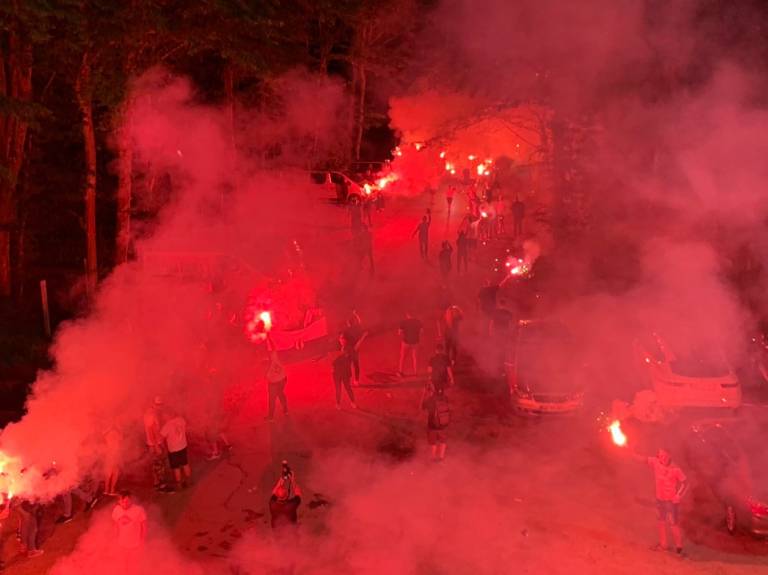 Okrog polnoči, ko so prvaki prispeli na domače prizorišče, pa so jih na Fazaneriji pričakali zadovoljni ter veseli navijači, ki so jim priredili zares nepozaben sprejem. Zbralo se je več sto pripadnikov črno-bele barve. Ob izjemni 'bakljadi', tradicionalnih navijaških napevih in nepopisnem veselju, so se nogometaši in strokovno vodstvo, kljub izmučenosti po naporni tekmi in vožnji, poveselili še s svojimi zvestimi privrženci.