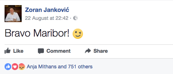 V evforiji, ki je po uvrstitvi vijolične čete v ligo prvakov zajela ne le Maribor, ampak vso Slovenijo, je Maribočanom čestital tudi Zoran Janković. No, očitno preveč navdušeno.