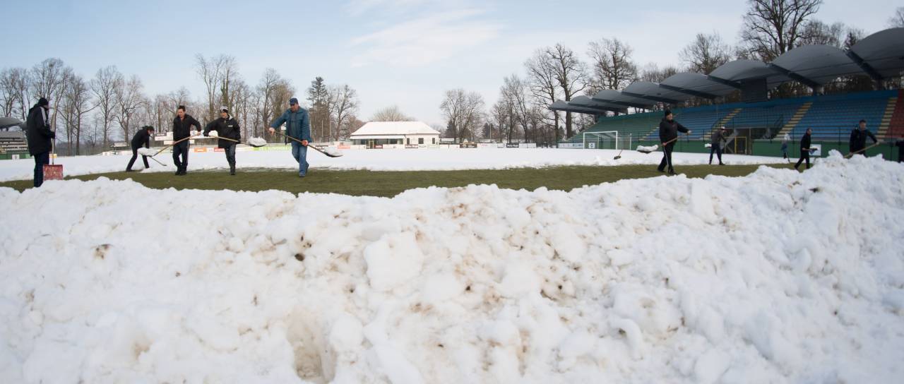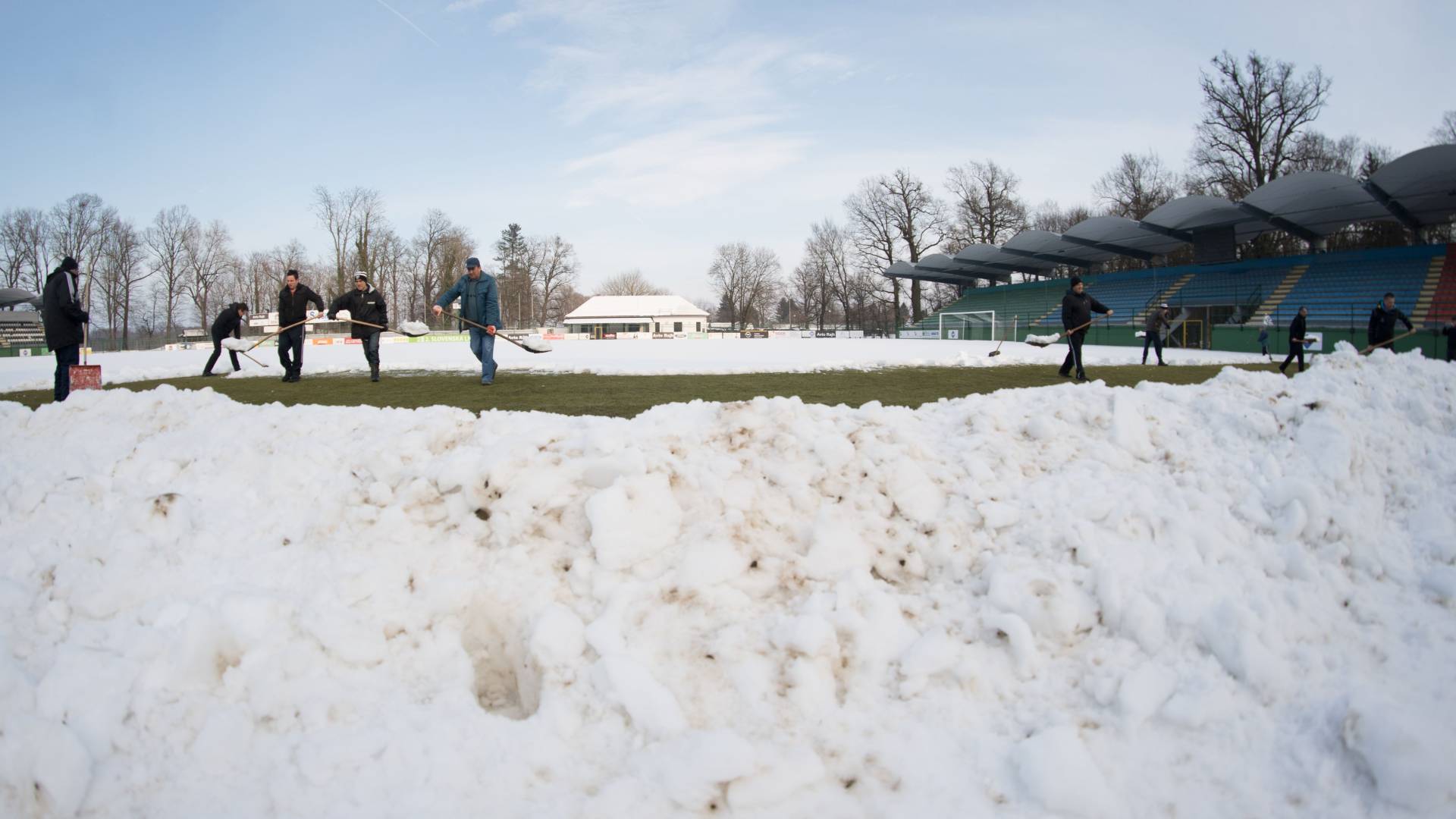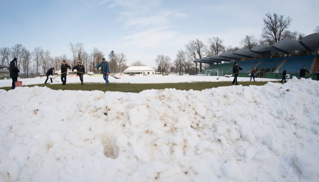 Zato so v soboškem drugoligašu danes na pomoč poklicali tudi pristaše črno-belih, ki so jim po svojih močeh pomagali pri čiščenju snega.