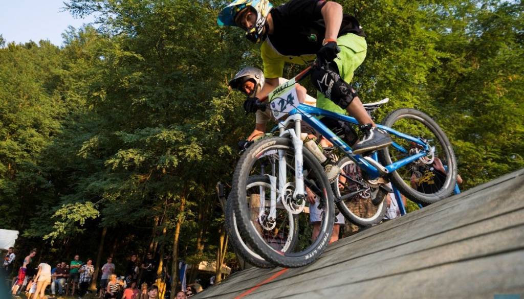 Na MTB progi Trebaš nad igriščem OŠ Sveti Jurij v Rogašovcih je včeraj potekal kolesarski dvoboj.