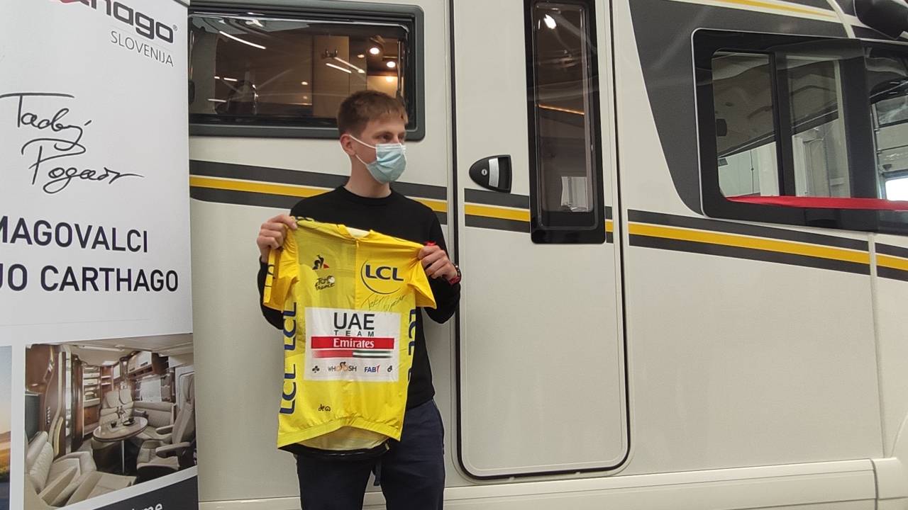 Nekaj besed je zbranim namenil tudi Pogačar, ki si je zaslužil glasen aplavz, ko je podjetju predal podpisano rumeno majico iz dirke po Franciji in jo »zamenjal« za avtodom.