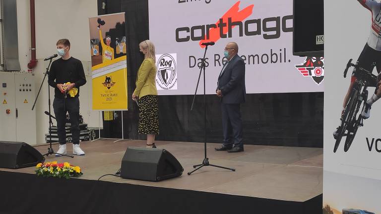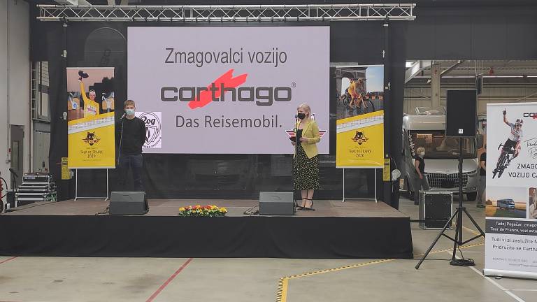 V Odrancih je bilo danes svečano. V podjetju Carthago so danes Tadeju Pogačarju predali vozilo Carthago c-compactline, ki je proizveden v obratu v Odrancih.