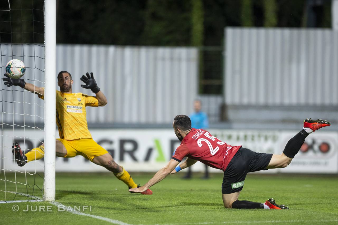 V 32. minuti je Jan Gorenc Muri priigral že drugo točko prednosti. Domači tako vodijo z 2 : 0.