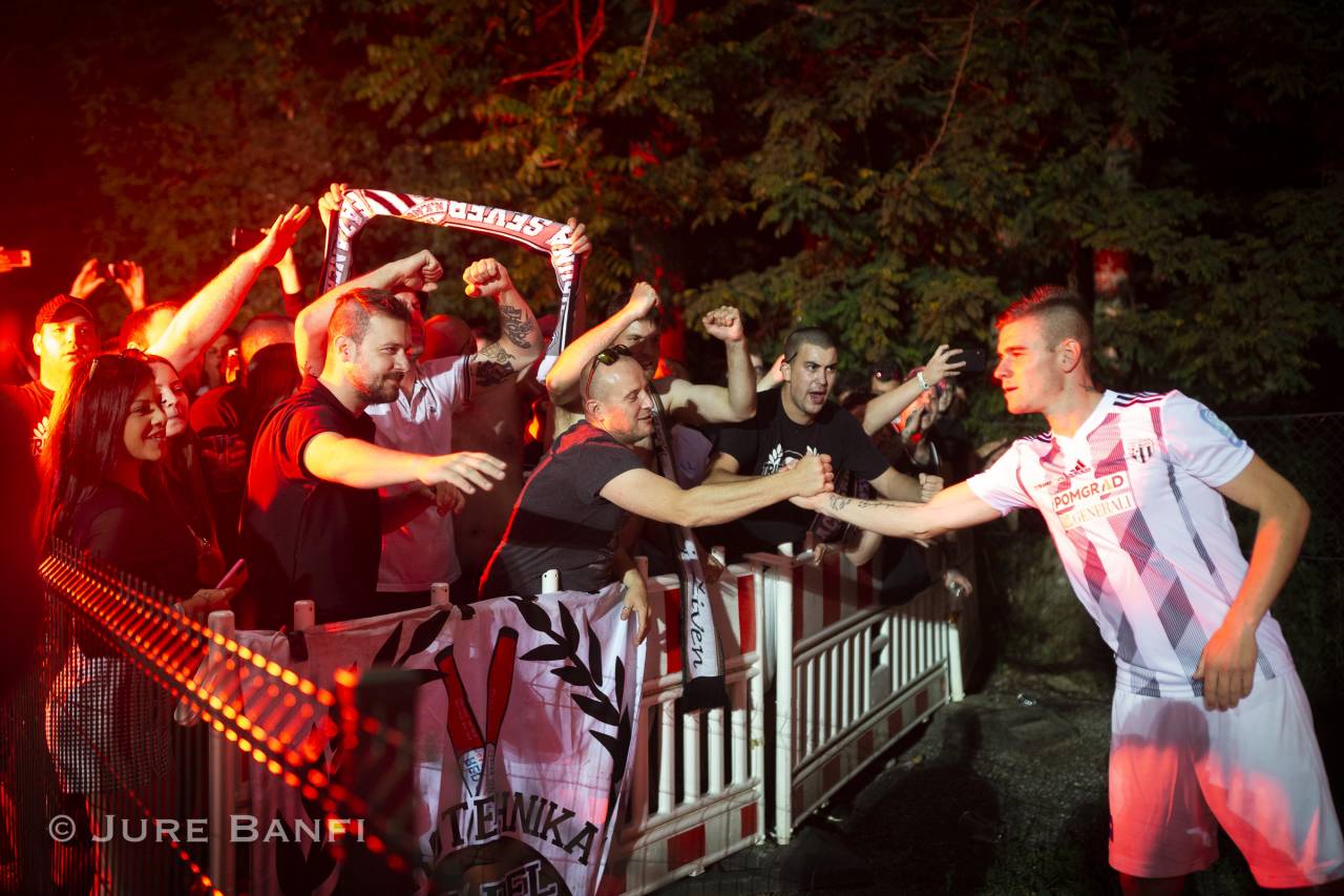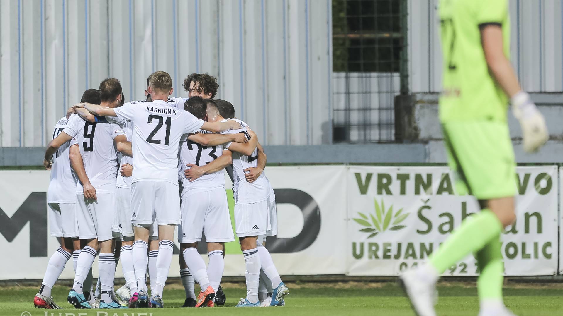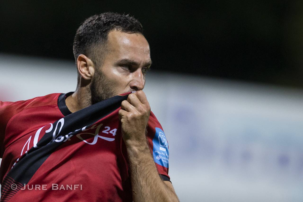 Luka Bobičanec je v 75. minuti tekme Muri prigral že tretji gol. Trenutni rezultat je 3 : 2.
