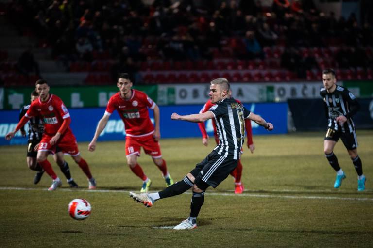 Čarno-bejli do vodstva v Kidričevem! Za 1:0 je iz enajstmetrovke zadel Luka Bobičanec!