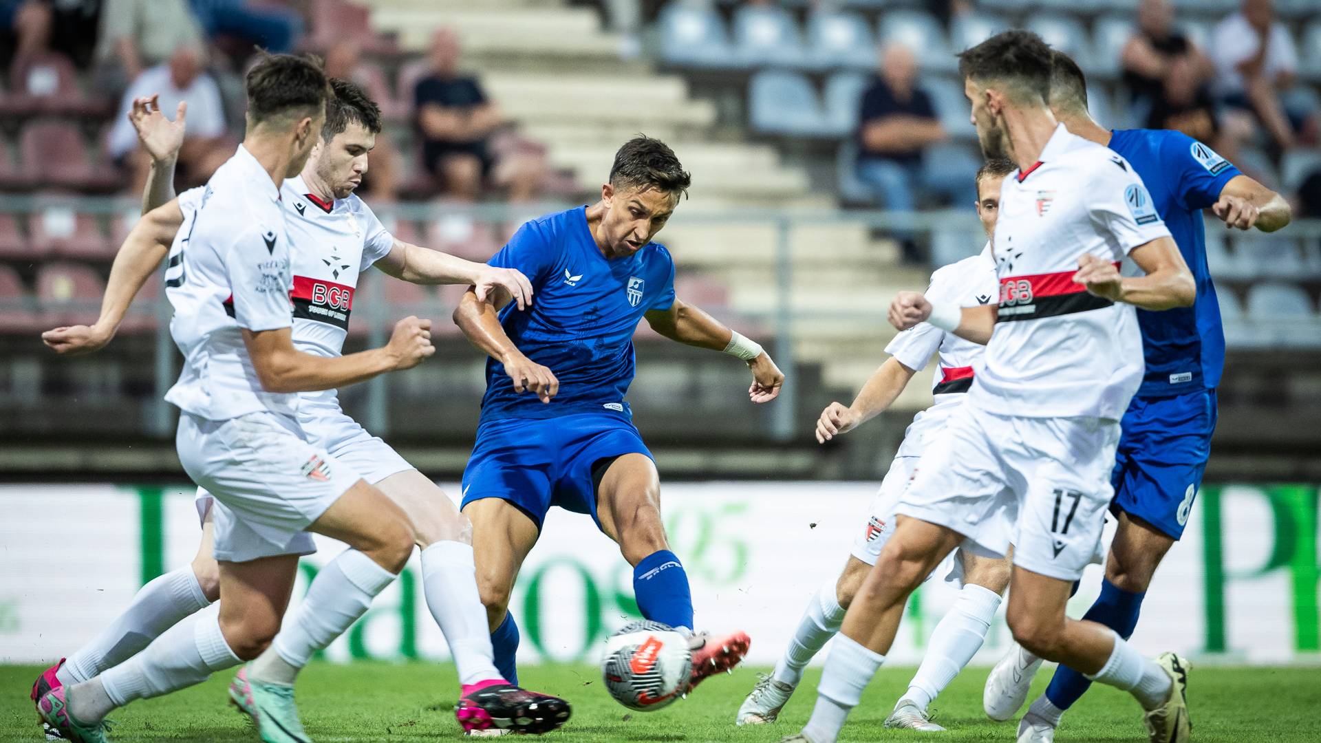63' PRILOŽNOST! Zsombor Kalnoki-Kis je podal z desne strani, neovirani Luka Dumančić je ob oddaljenejši vratnici meril v bližnji kot, a se je izkazal Gašper Tratnik in žogo izbil v kot.