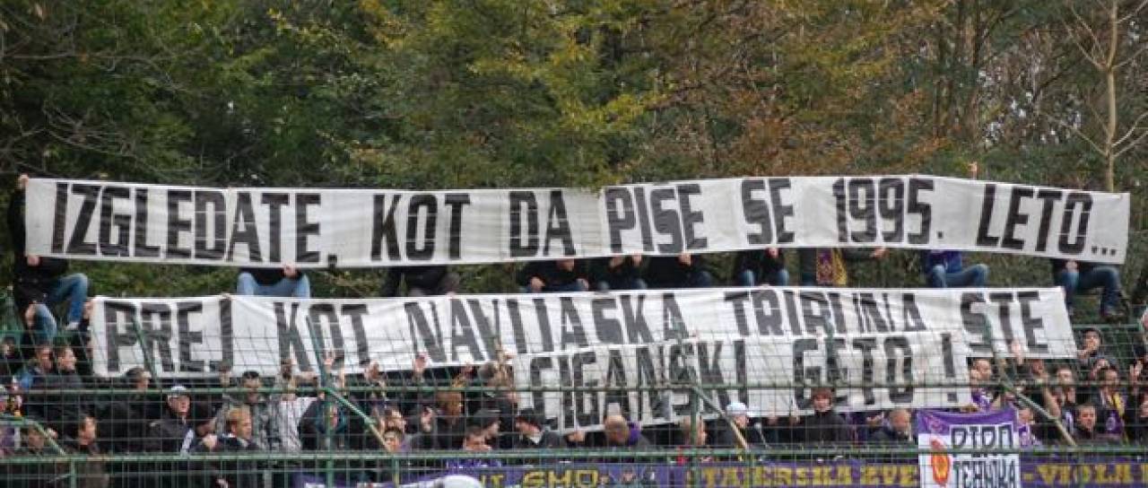 "Izgledate, kot da se piše 1995. leto... Prej kot navijaška skupina ste ciganski geto!," je pisalo na transparentu, ki so ga na tekmi proti Muri razvili navijači Maribora in svojemu klubu "priskrbeli" plačilo denarne kazni v višini 750 evrov. Tako je namreč odločil Simon Jeglič, disciplinski sodnik NZS, ki je v svojem pojasnilu zapisal: "Nešportno in neetično obnašanje organizirane navijaške skupine - navijači ekipe Maribor so v 6. minuti tekme na tribuni razvili transparent z žaljivo vsebino; upoštevana predkaznovanost".