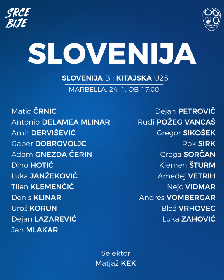 Slovenska B reprezentanca bo 24. januarja v španski Marbelli odigrala prijateljsko srečanje proti Kitajski. Matjaž Kek je na seznam kandidatov za nastop uvrstil tudi dva nogometaša Mure.