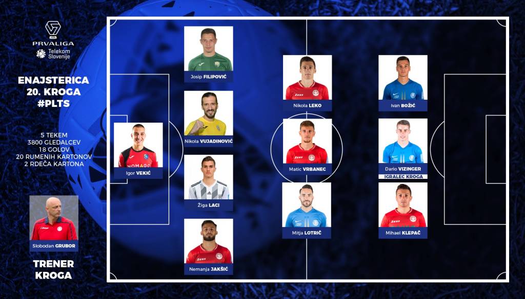 Vezno linijo tokrat sestavljajo Nikola Leko in Matic Vrbanec iz Aluminija ter Mitja Lotrič iz Celja. V napadu so Mihael Klepač iz Aluminija in Ivan Božić ter Dario Vizinger, ki je postal tudi igralec kroga, iz Celja.