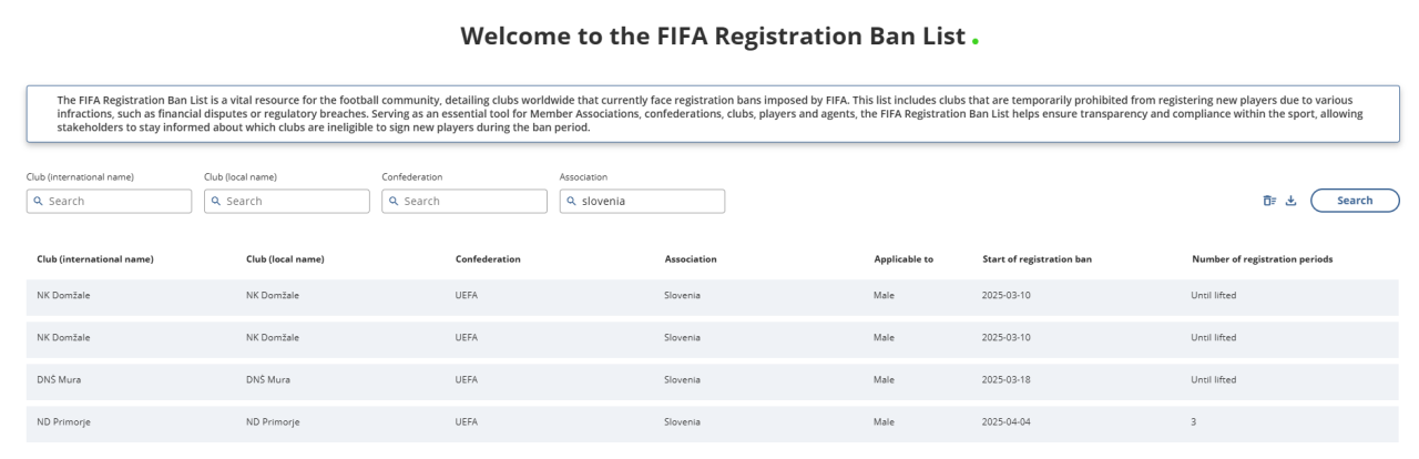 Mednarodna nogometna zveza je na seznam klubov s prepovedjo registracij uvrstila tudi Nogometno šolo Mura.
