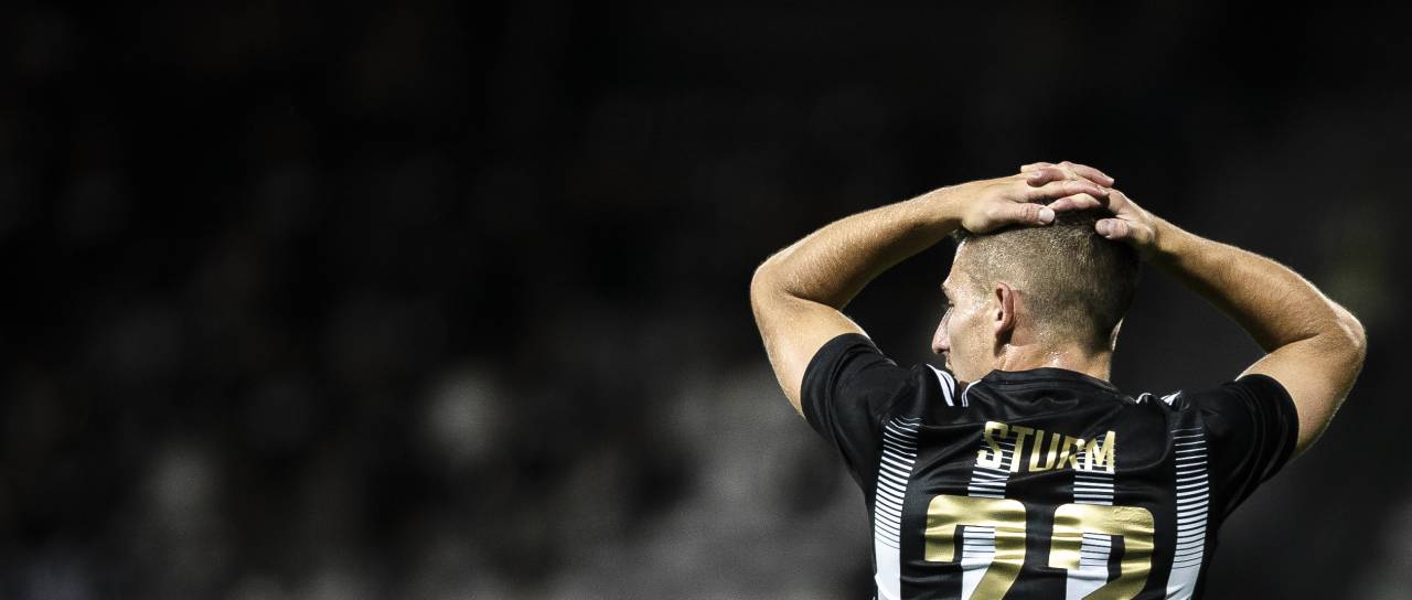 9'. Po strelu z glavo Parrisa se je zatresla desna vratnica Matka Obradovića. Sreča za Muraše. Ostaja pri minimalnem vodstvu črno-belih.