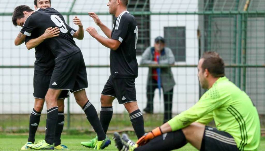 Tudi v drugem polčasu so črno-beli dominirali na igrišču. Mrežo je v drugem delu igre načel Tim Kolar, za njim pa so zadetke nanizali še Jan Šuša, Karas in Vaš. Častni zadetek je ob koncu tekme za ekipo Grada dosegel Aljoša Vöröš, na kar so domačini hitro odgovorili z zadetkom Davida Tomažiča Šeruge, ki je postavil končni izid 9:1.