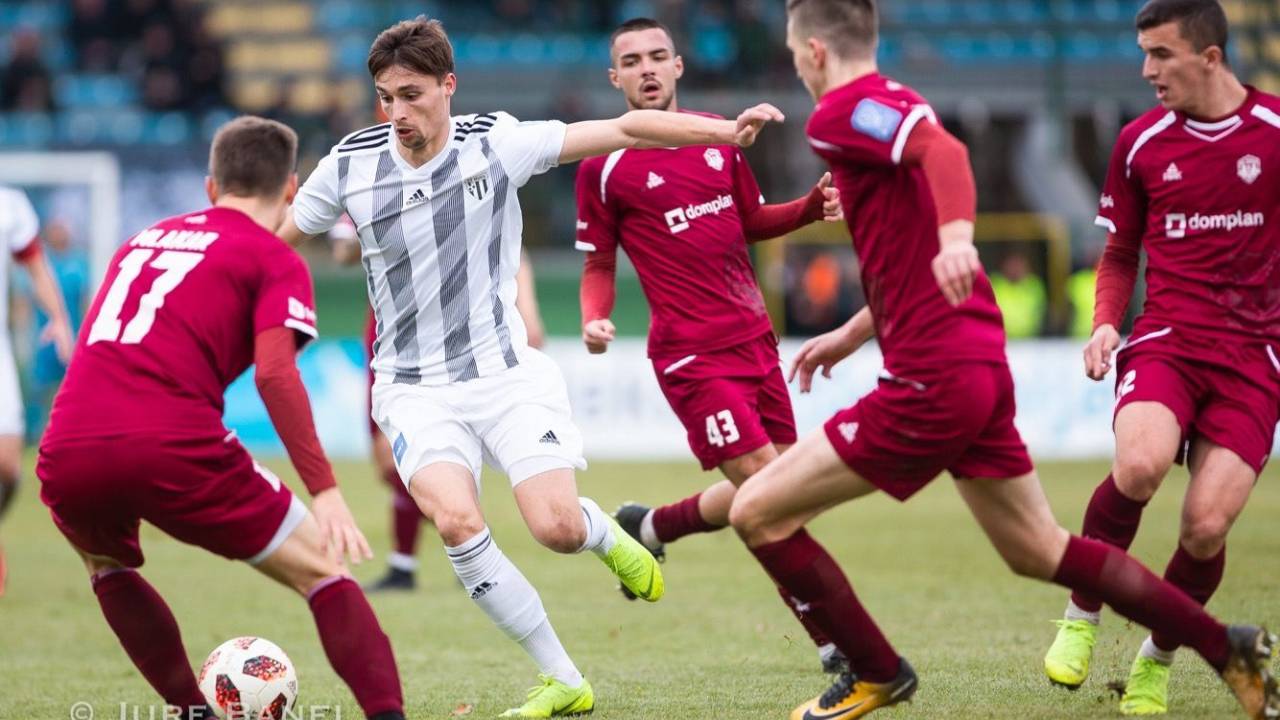 Prvi polčas v Prekmurju je ponudil enakovredno igro tekmecev, ki sta imela po eno lepo priložnost. Mura je zagrozila v 13. minuti, ki je Luka Šušnjara meril z glavo, a le malce premalo natančno, na drugi strani pa je bil najnevarnejši David Tijanić v 37. minuti, ko je povsem neoviran streljal z glavo iz bližine, a je Matko Obradović žogo odbil.