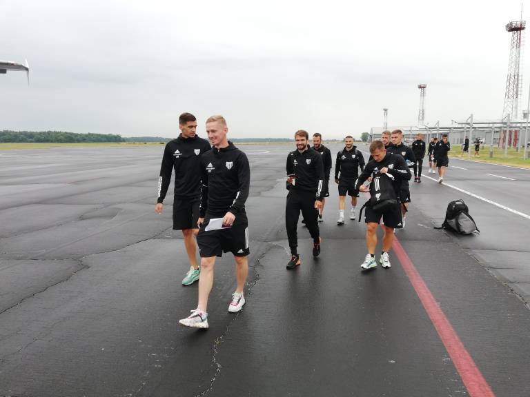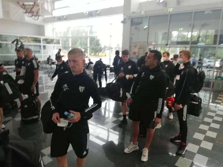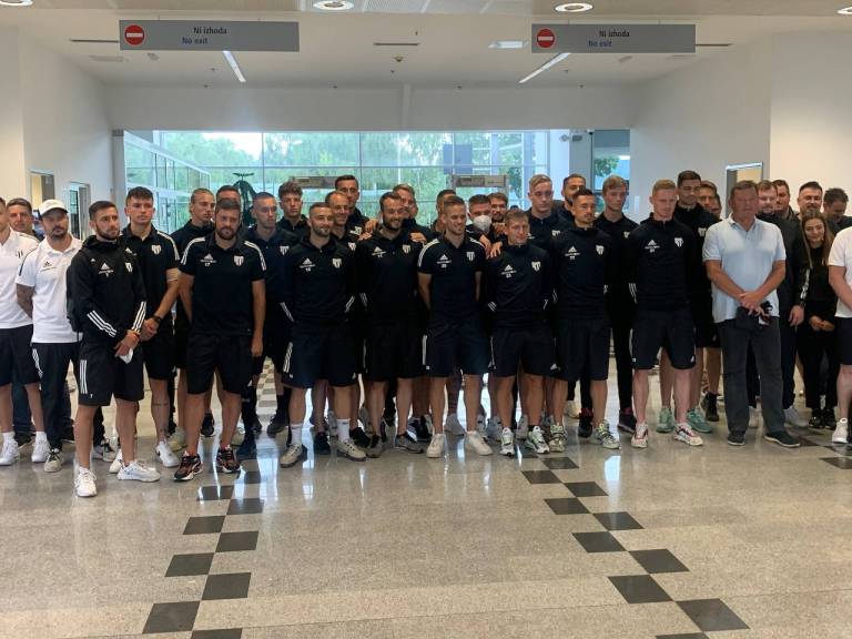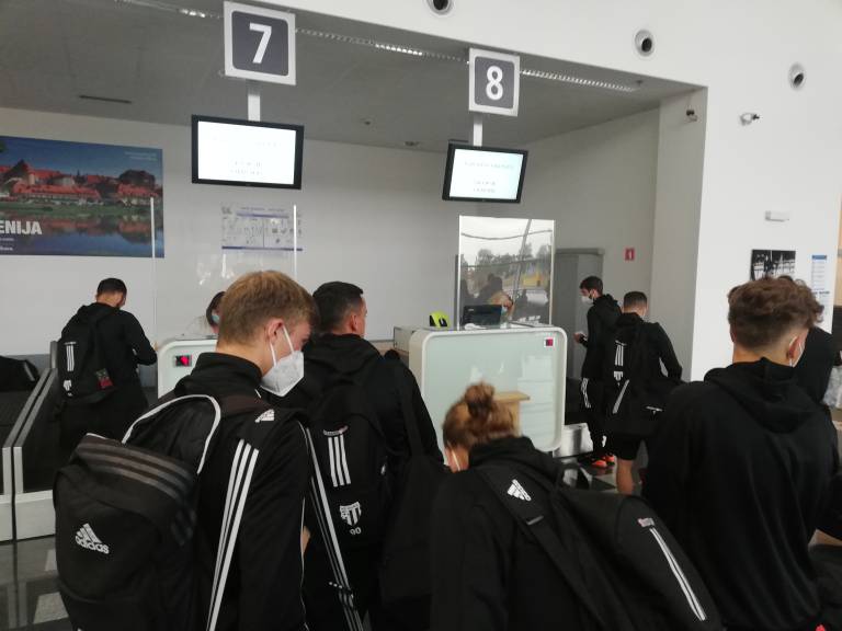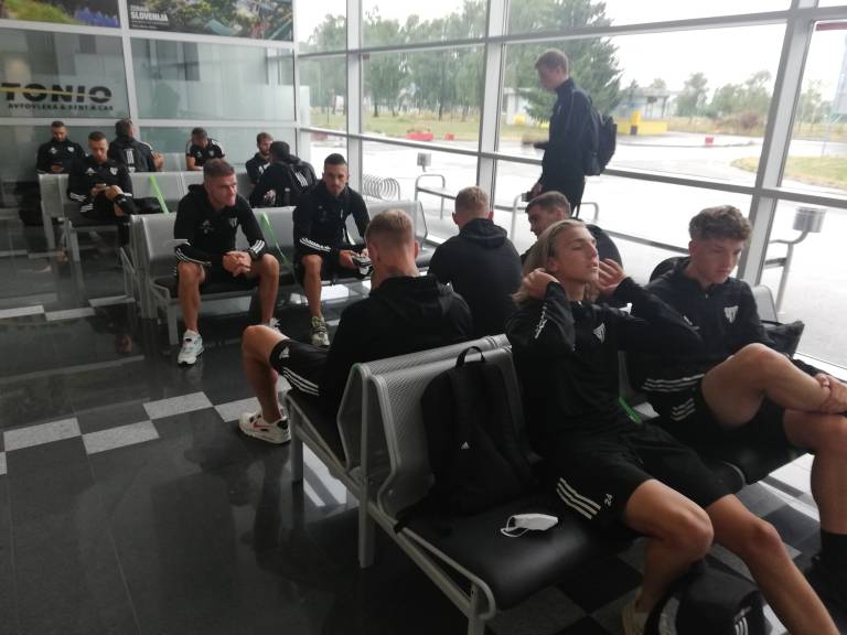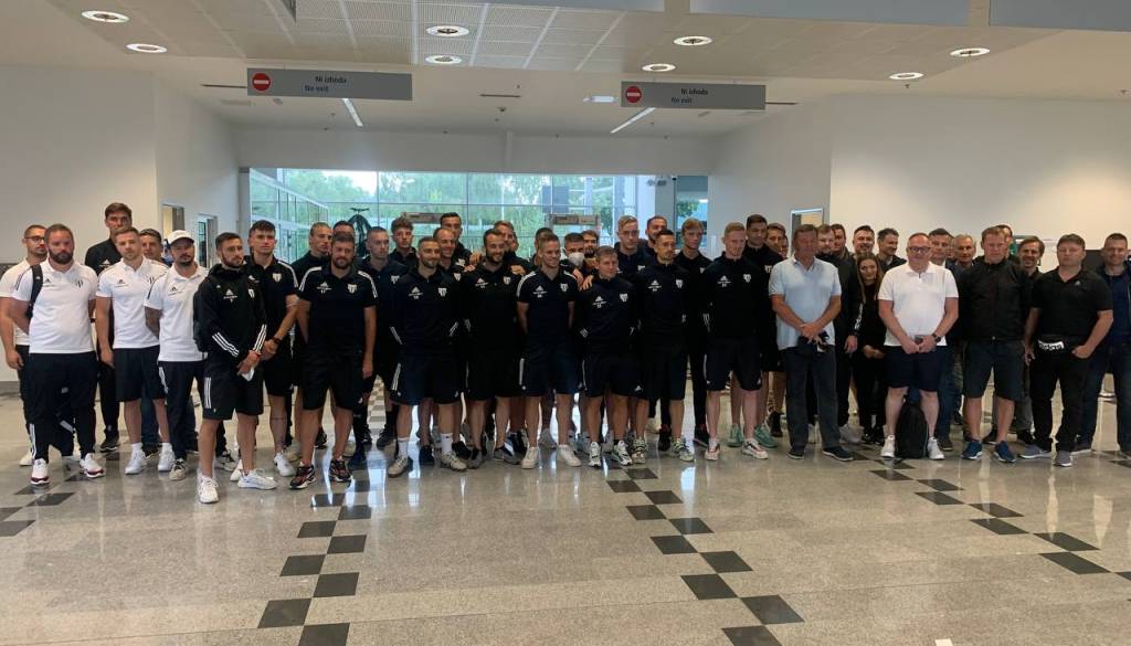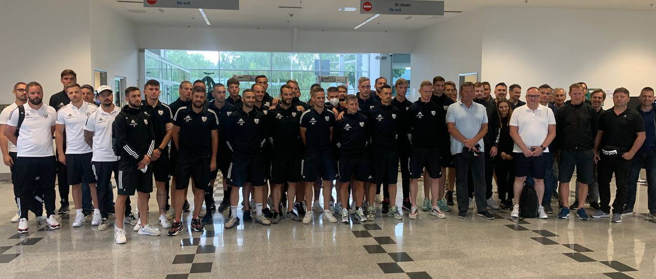 Ob 10. uri so črno-beli z mariborskega letališča poleteli proti Skopju, kjer jih jutri večer čaka prva tekma kvalifikacij za Ligo prvakov.