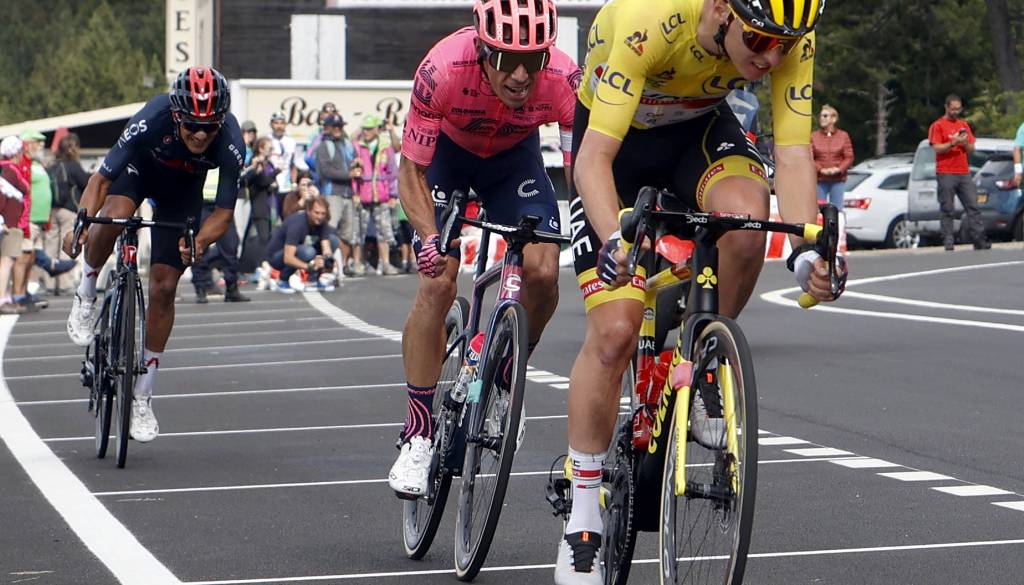 Petindvajsetletni Pogačar je napadel dobrih 800 metrov pred vrhom in ob tem strl Vingegaarda (Visma-Lease a Bike).