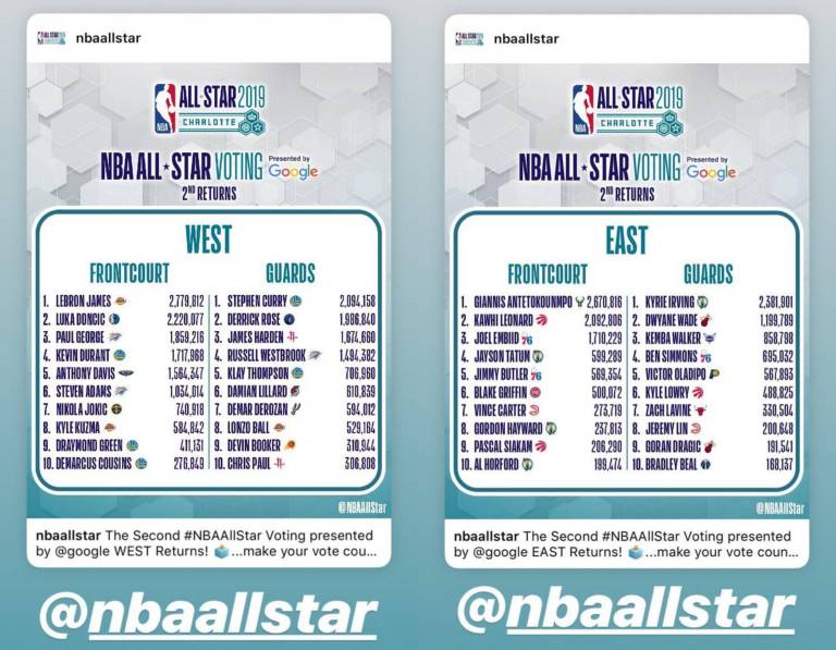 Dončić, ki je bil po prvih vmesnih rezultatih na visokem drugem mestu, je svojo pozicijo ohranil, prednost glasov pred prvim zasledovalcem pa se je drastično povišala. Medtem, ko je bilo med njim in Kevinom Durantom približno dvajset tisoč glasov razlike, je razlika do tretjeuvrščenega Paula George, ki je prehitel Duranta, skorajda 360 tisoč glasov.