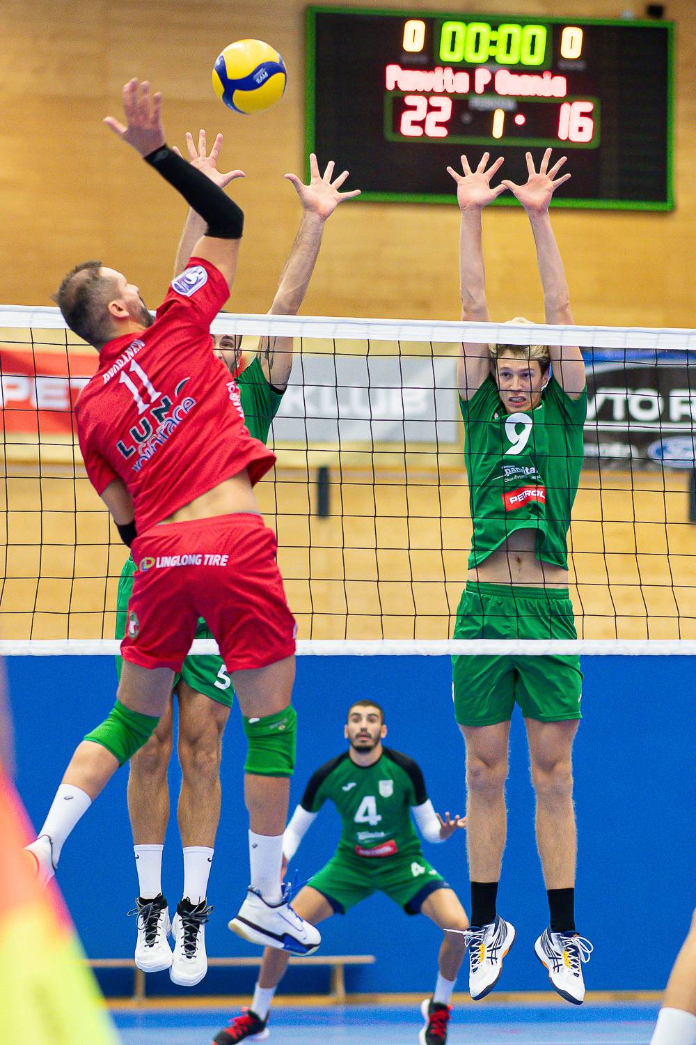 Omonia dolgo ni dopustila, da bi se Panvita Pomgrad približala na manj kot tri točke razlike, Savvas pa je pri izidu 22:20 - Ciprčani so žogo poslali izven igrišča - posegel po odmoru. Victor Pereira je povišal na 23:20, Ciprčani pa so po avtu Mirkovića izkoristili drugo zaključno žogo za znižanje na 1:2 v nizih.