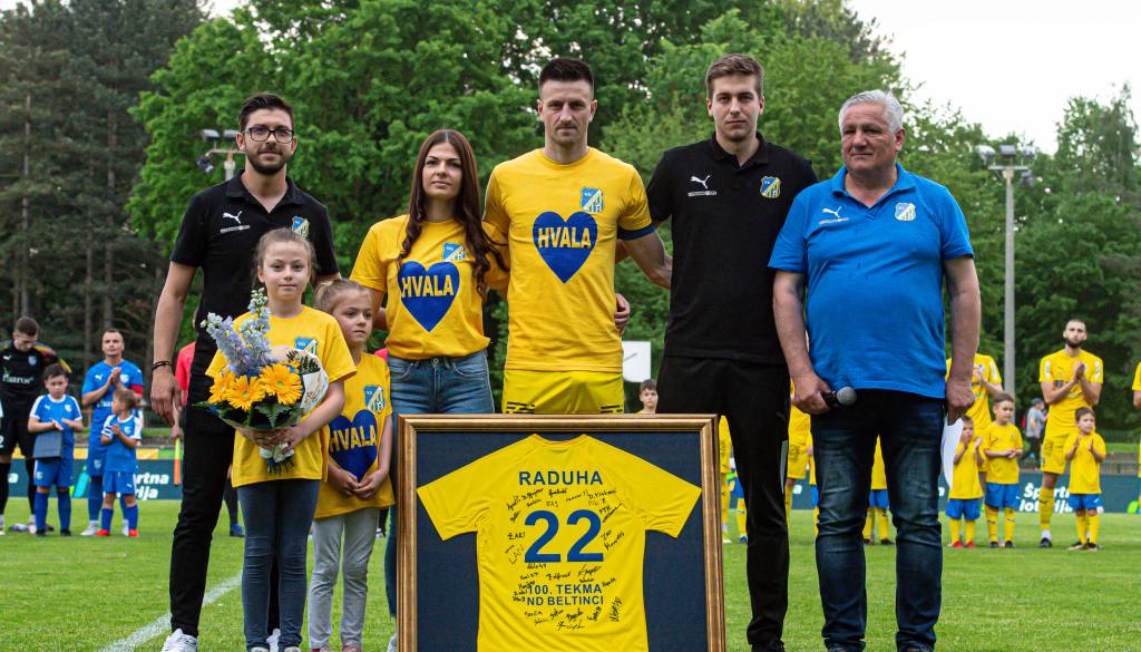Že v petkovem popoldnevu pa je zadnji nastop v dresu Beltincev vknjižil Patrik Raduha. Kapetan »žutih« je prav na derbiju z Nafto odigral stoto uradno tekmo za beltinski klub.
