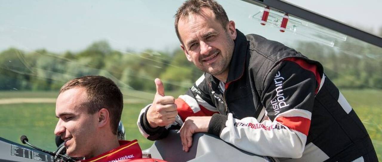 Peljati med oblake “slepega potnika" je bila za pilota Petra Podlunška prva tovrstna izkušnja. Ker je za orientacijo v 3D prostoru bistvenega pomena vid, je Petra skrbelo, kako bo Miho sploh pripravil na polet. Master pilot svetovnega prvenstva Red Bull Air Race si je vzel čas in Miho v hangarju z rokami in besedo popeljal skozi vse faze poleta.