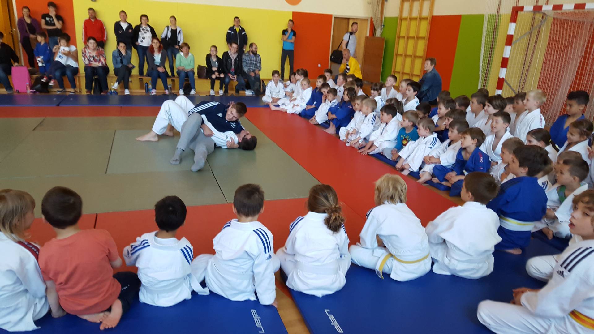 Otroci so se pomerili v prilagojenih judo borbah na kolenih, judo borbah v parterju in rednih judo borbah ter prikazali odlične borbe.