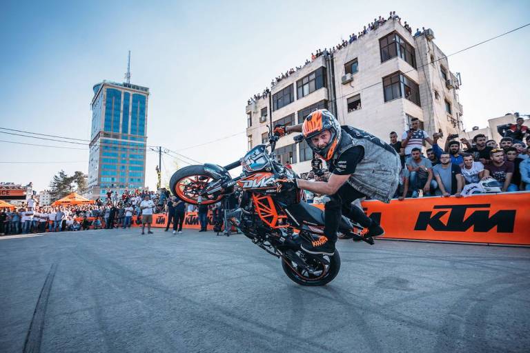 KTM-ov ambasador in stunt motorist Rok Bagoroš je prvi profesionalni motošportnik v zgodovini, ki je obiskal Palestino in v pretežno muslimanskem mestu Ramallah na Zahodnem bregu nastopil pred šest tisoč glavo množico.