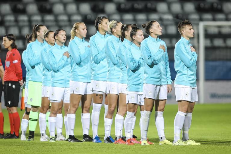Slovenija: Zala Meršnik, Kaja Eržen, Lana Golob, Sara Agrež, Kristina Erman, Dominika Čonč (81' Adrijana Mori), Kaja Korošec, Špela Kolbl (46' Ana Milović), Pamela Begić (59' Manja Rogan), Mateja Zver (92' Sara Makovec), Lara Prašnikar. Selektor: Borut Jarc.