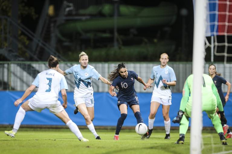 Strelke: Lara Prašnikar (20'), Mateja Zver (88'/11m); Marie-Antoinette Katoto (28', 60'), Amel Majri (94'/11m)