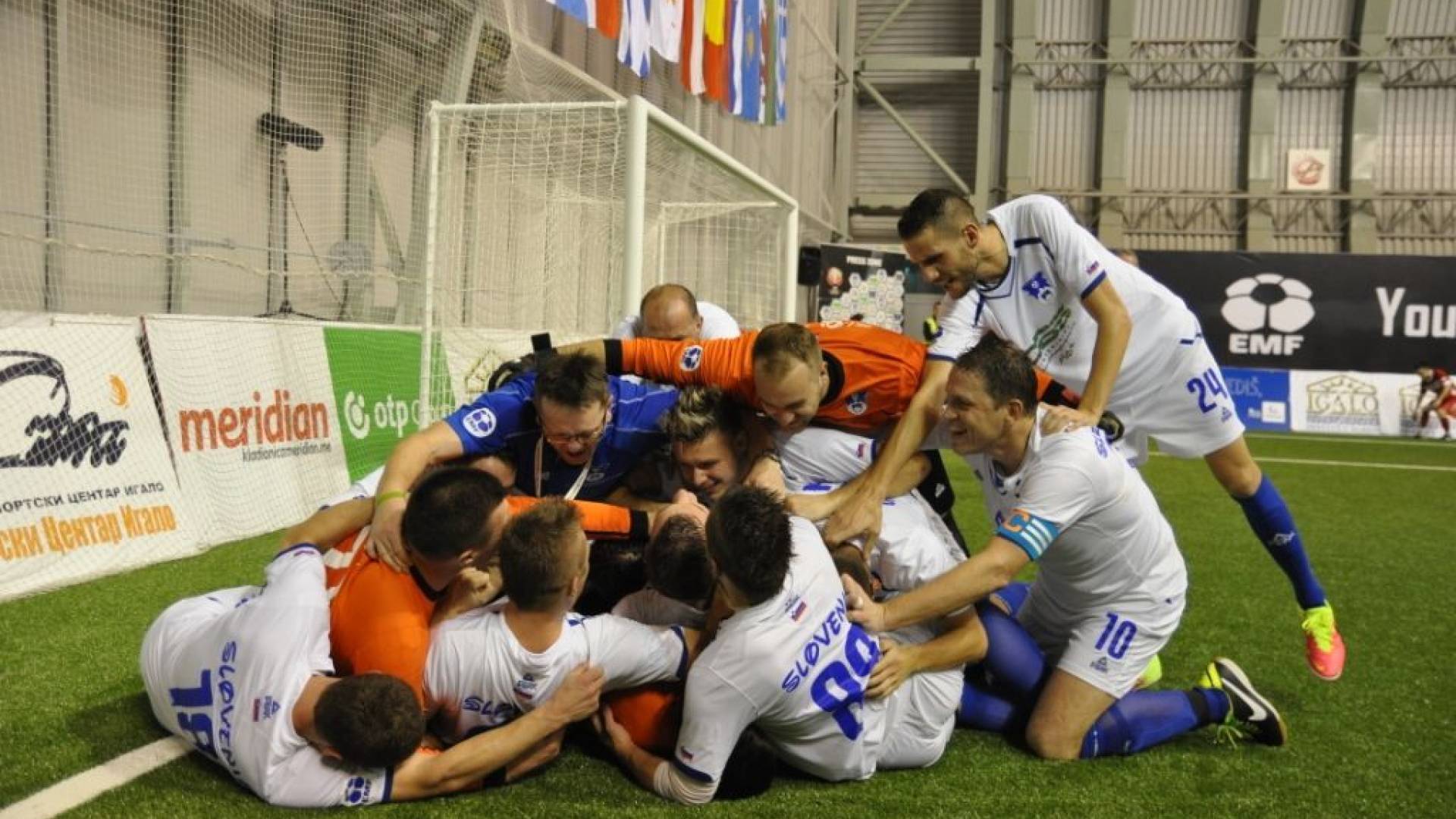Slovenska rekreativna malonogometna reprezentanca v polfinalu po kazenskih strelih premagala Kazahstance in se uvrstila v polfinale.
