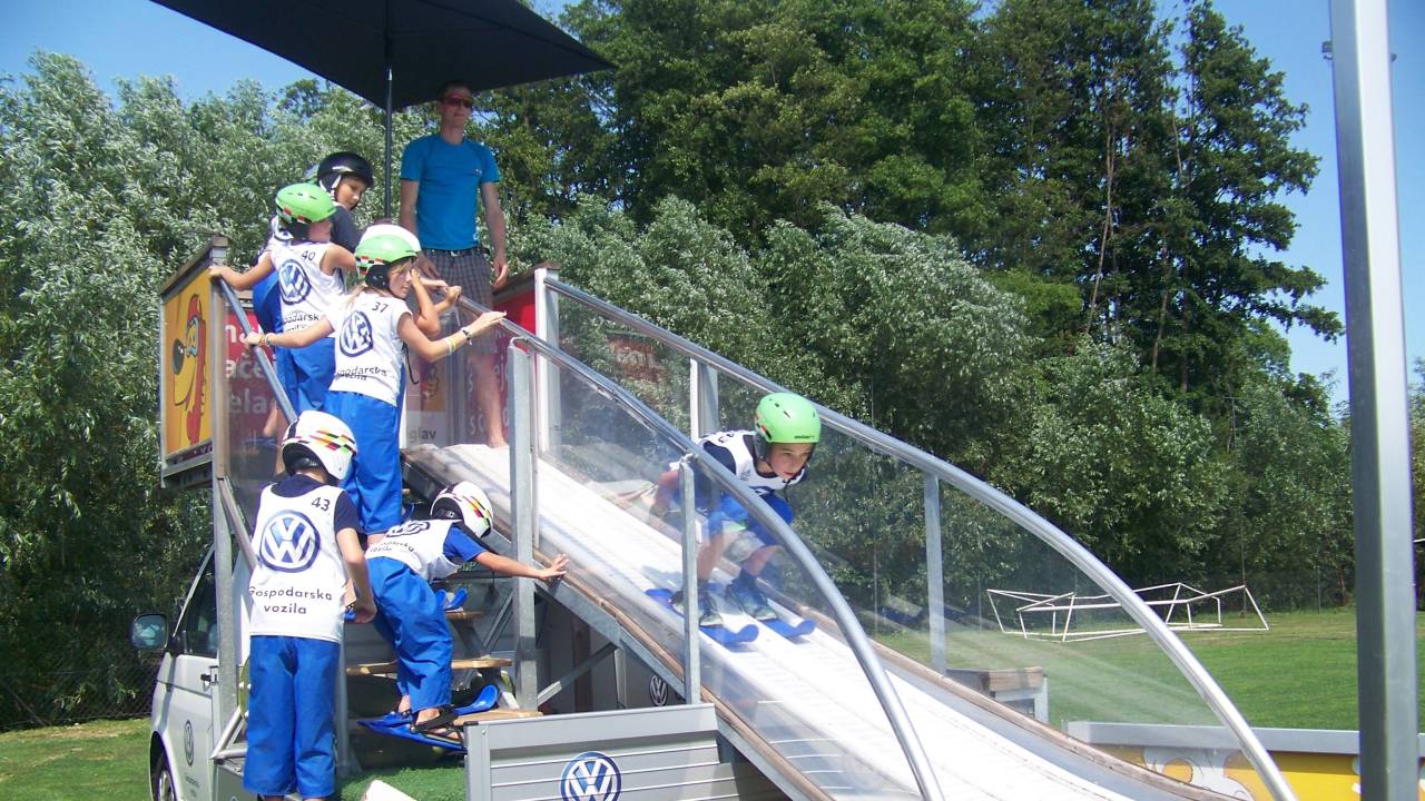 Društvo Štrk Slovenija je v športno prireditvenem centru Poljana v Veliki Polani pripravilo Pomurski poletni festival, ki letos prinaša tudi Štrkov športni teden. V okviru tega so lahko otroci te dni uživali tudi v smučarskih skokih na mini Planici.