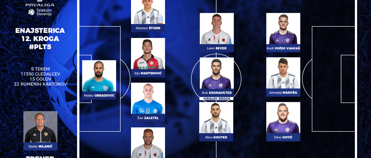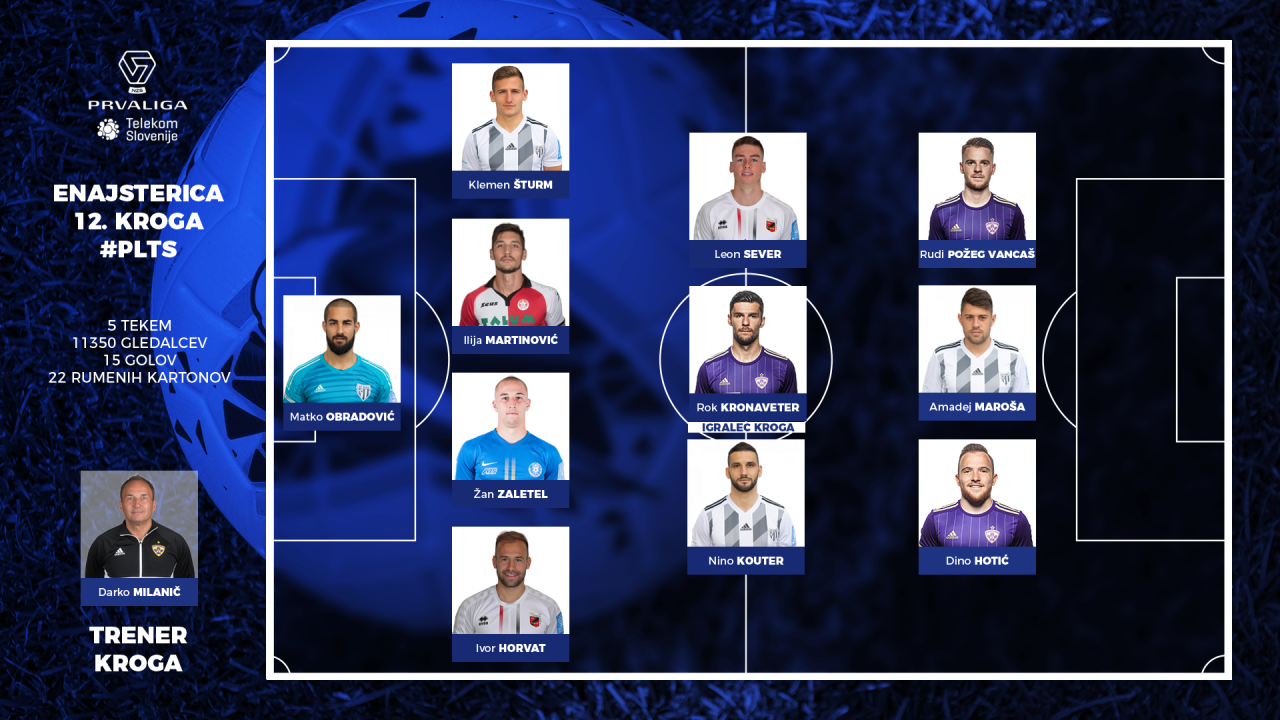 Na vratih tokratne enajsterice kroga je torej vratar Mure Matko Obradović, v obrambni vrsti pa so Ivor Horvat iz Tabor Sežane, Žan Zaletel iz Celja, Ilija Martinović iz Aluminija in Klemen Šturm iz Mure.