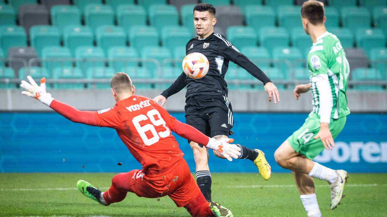 38' Vodstvo Olimpije. Zadel je 20-letni Svit Sešlar, a je bil gol razveljavljen zaradi prepovedanega položaja, ostaja 0:0