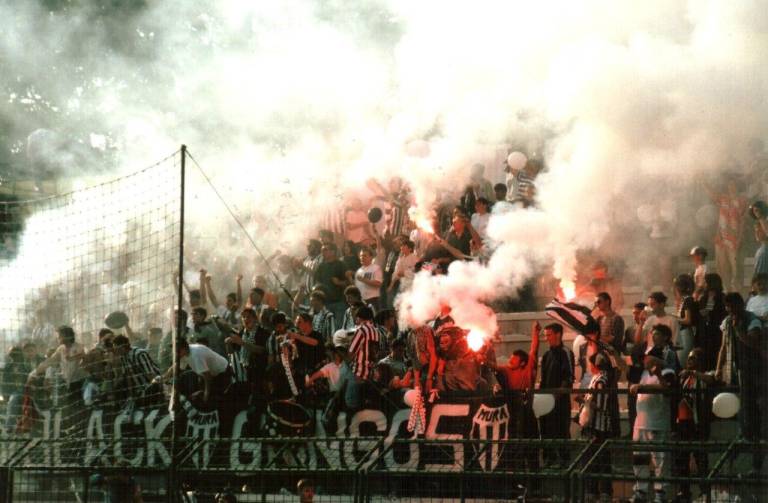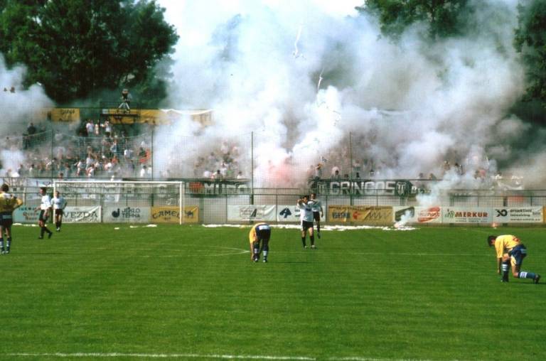 Nato pa povratno srečanje na Fazaneriji, ki je ponudilo tudi eno najboljših navijaških kulis s strani Black Gringosov. Ti so poskrbeli za pirotehnični spektakel, koreografije in navijanje do zadnjega glasu. Na igrišču so še ležali trakovi, ki so bili v tistih časih stalni spremljevalec koreografij, ko je Nedeljko Topić s "špičko" poskrbel za delirij na tribunah in edino lovoriko v zgodovini Mure.