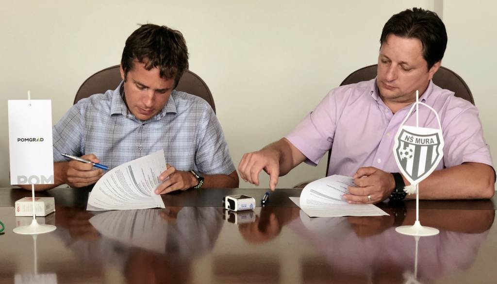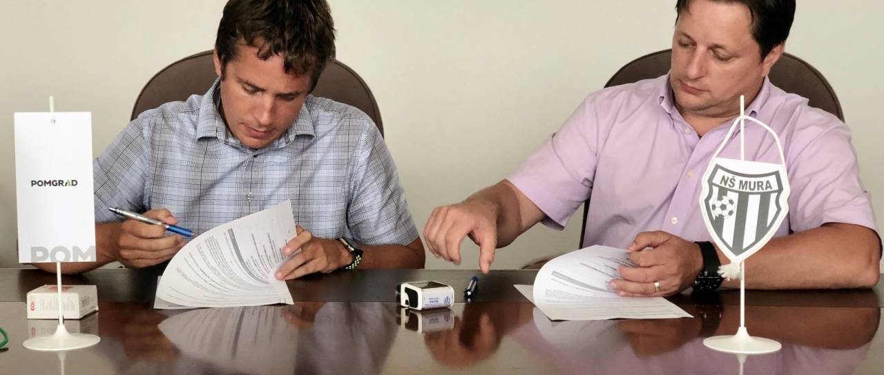 Predsednik uprave Pomgrada Iztok Polanič je namreč danes na sedežu družbe s predsednikom NŠ Mura Robertom Kuzmičem podpisal sponzorsko pogodbo za naslednji dve nogometni sezoni.
