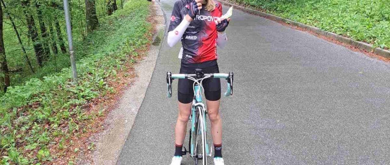 »Maša v Kolesarskem klubu Tropovci trenira od začetka aprila 2023. Takoj po nekaj prvih prevoženih kilometrih v našem klubu in nekaj opravljenih treningih je pokazala nadarjenost za kolesarstvo.