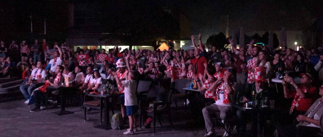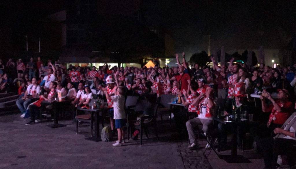 Navijači Hrvaške so srečanje pričakali nekoliko zadržani, po izenačujočem zadetku pa se je ozračje ogrelo in začeli so se navijaški napevi. Sledili so podaljški, zadetek Domagoja Vide in erupcija navdušenja v centru mesta.