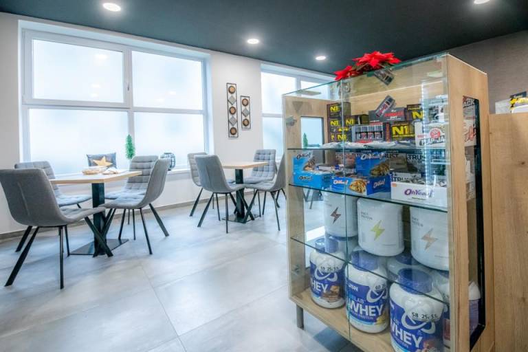 Del fitnesa tudi bar s teraso, kjer strežejo odlično kavo Illy, ponujajo pa tudi veliko športnih dodatkov in prehranskih dopolnil blagovne znamke Proteini.si. Uporabnikom in obiskovalcem fitnesa tako zagotavljajo vse potrebno za dober trening.