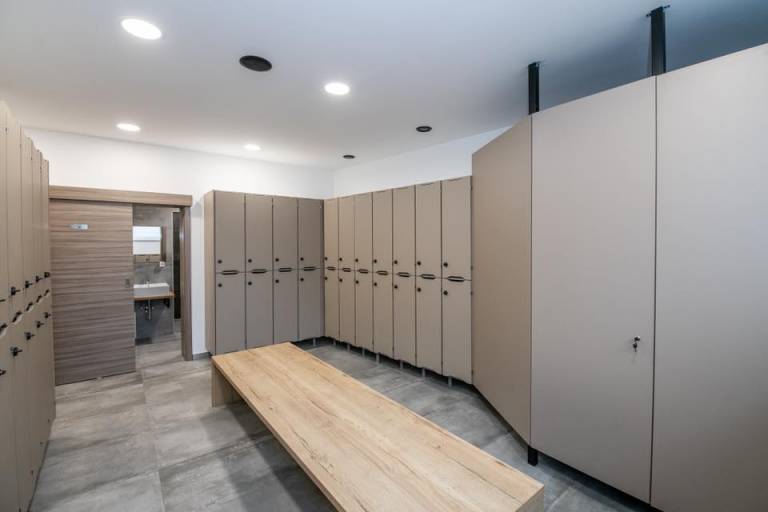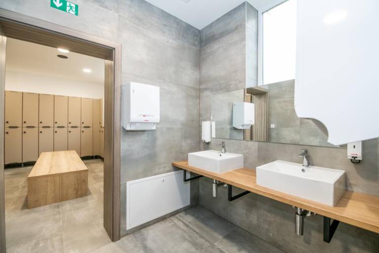 Fitness center odlikujejo tudi moderno zasnovani ženska in moška garderoba, ločeni wc-ji in tuš kabine.